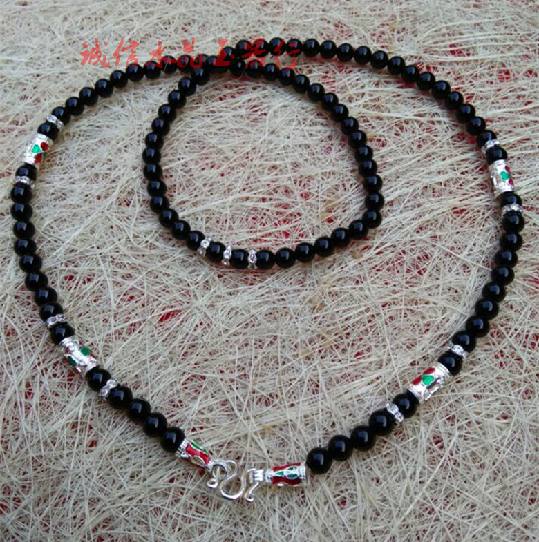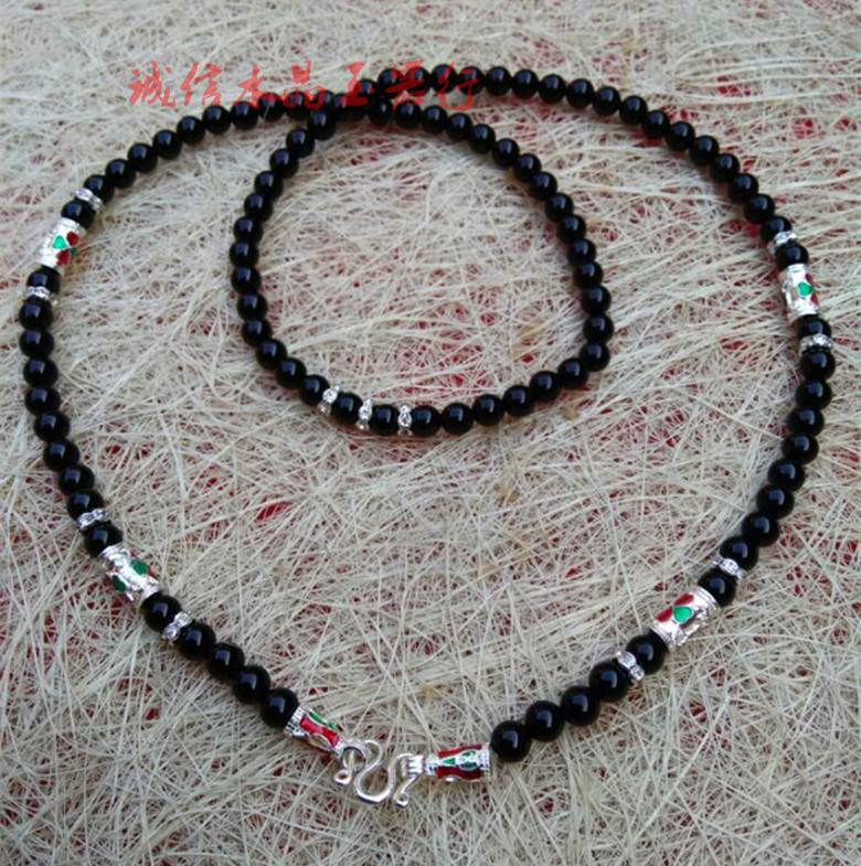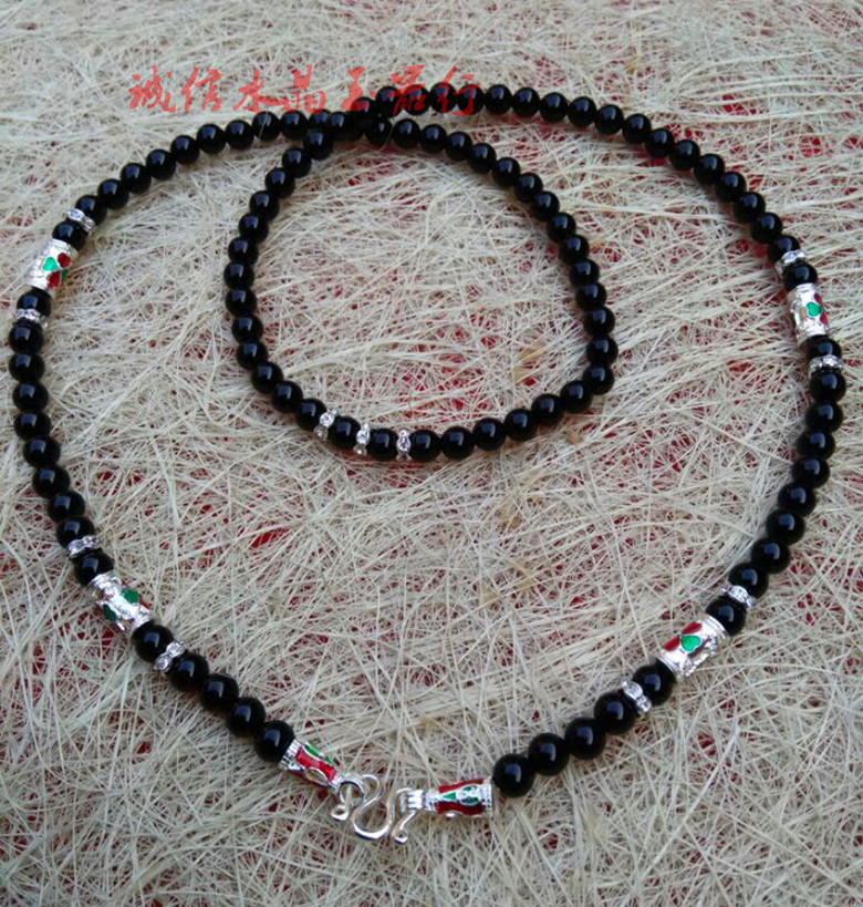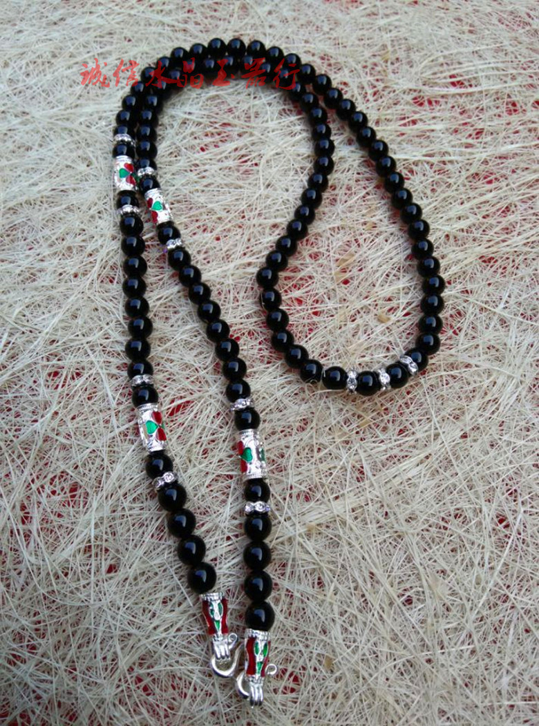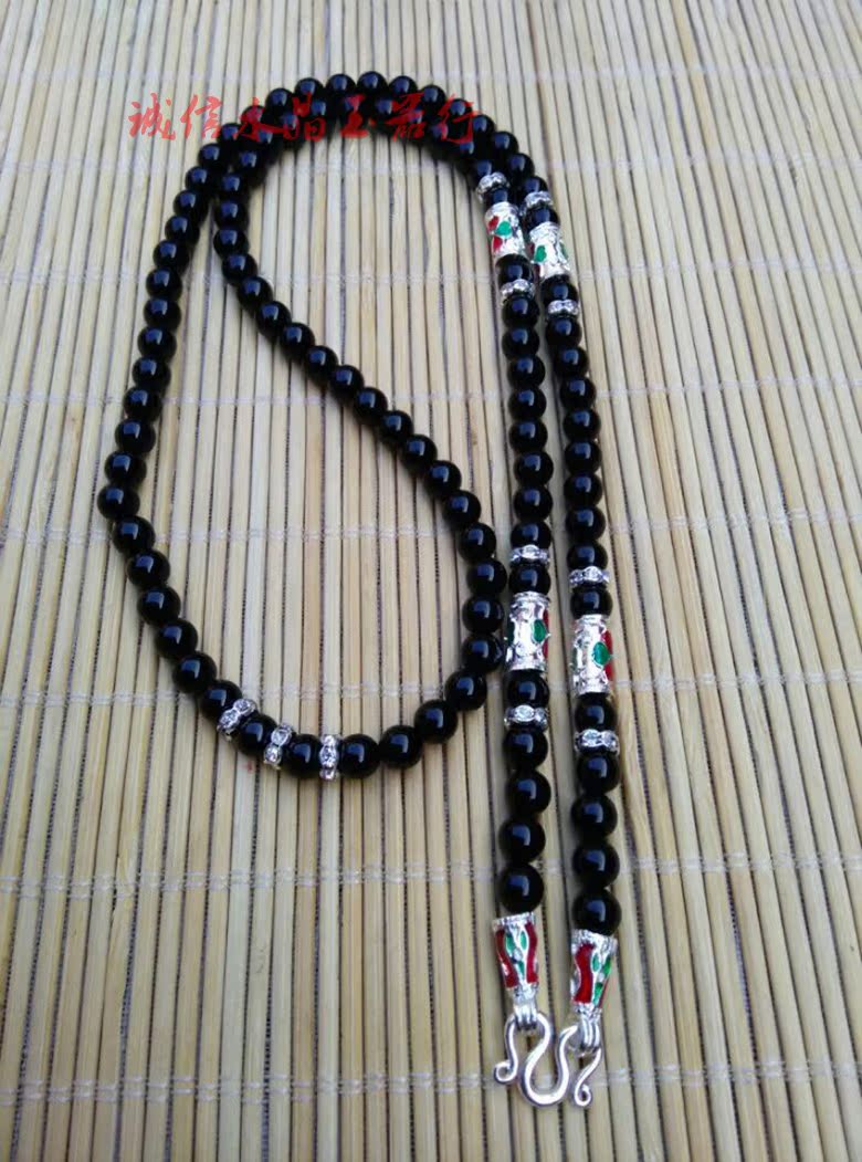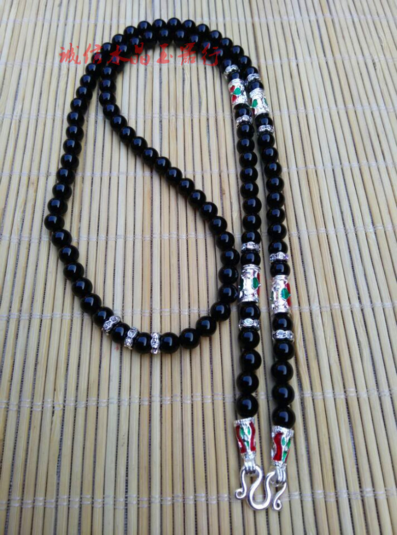 辟邪黑瑪瑙泰國佛牌鏈 男女款 佛珠項鏈掛鏈子長款毛衣鏈水晶寶1入