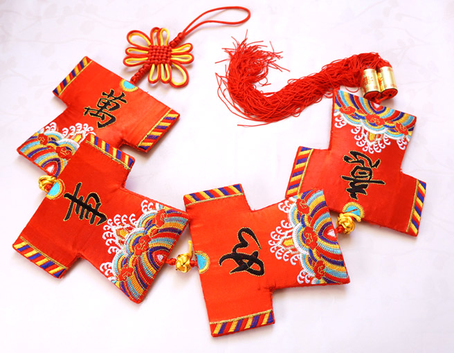 小號單個刺繡10*10cm,厚約1.2cm,整個掛件全長85cm左右