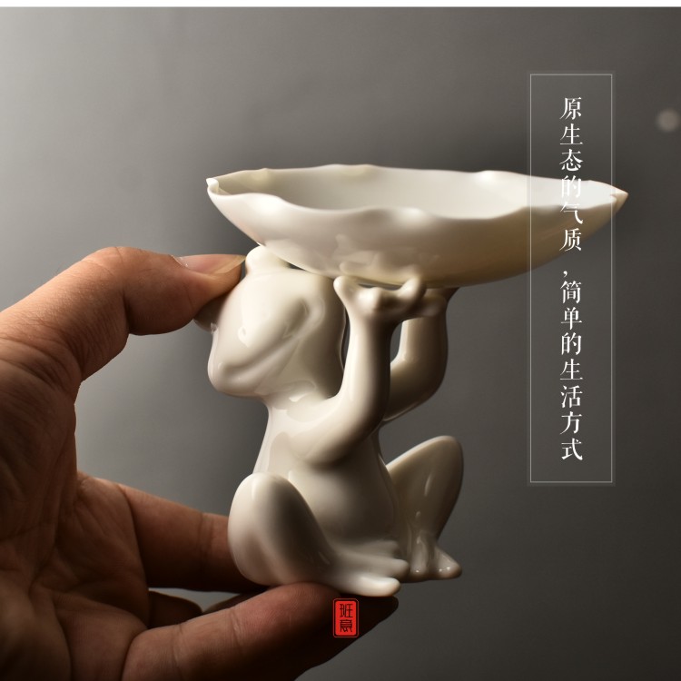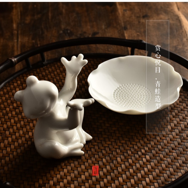 飲致青蛙白瓷茶漏陶瓷創意茶濾網茶葉過濾器茶具配件擺件泡茶神器1入