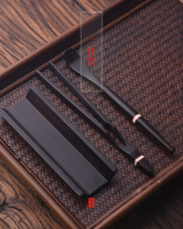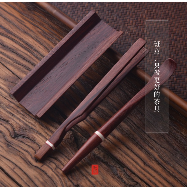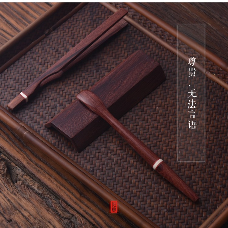黑檀酸枝茶則功夫茶道配件復古實木茶夾茶勺茶夾木質量茶器三件套1入