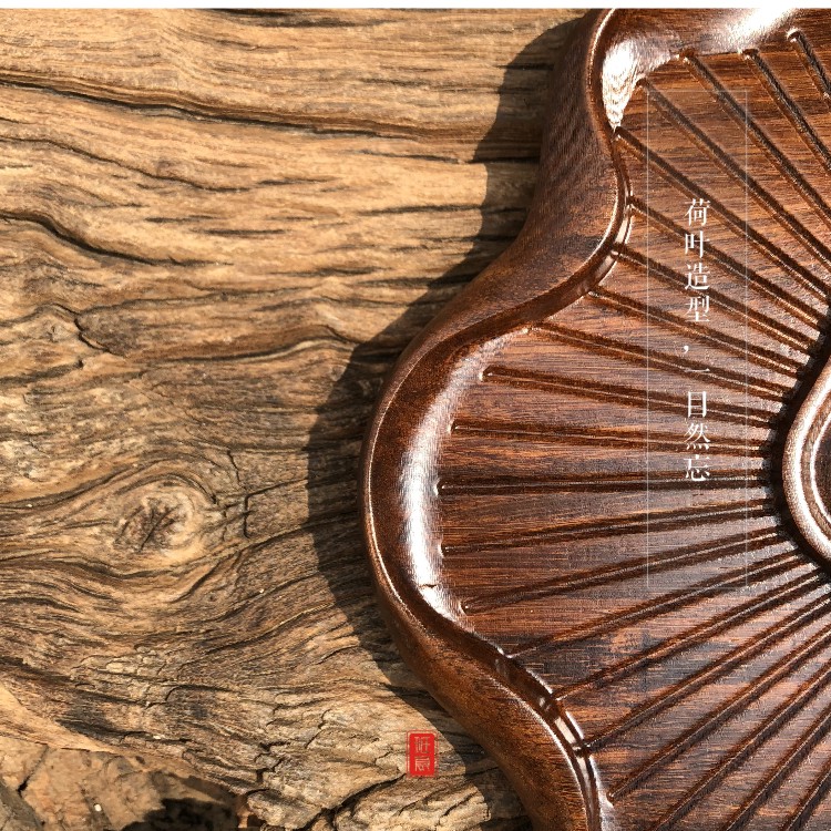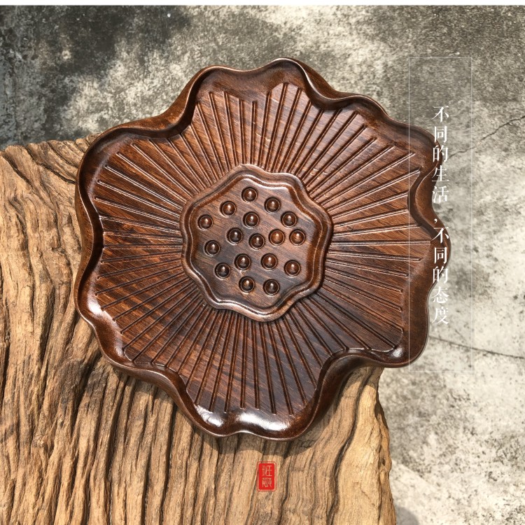 重竹竹制荷葉形茶盤茶臺小號茶托盤干泡臺功夫茶具現代簡約家用1入