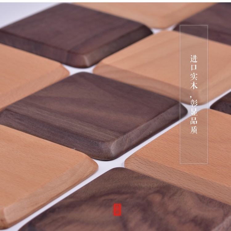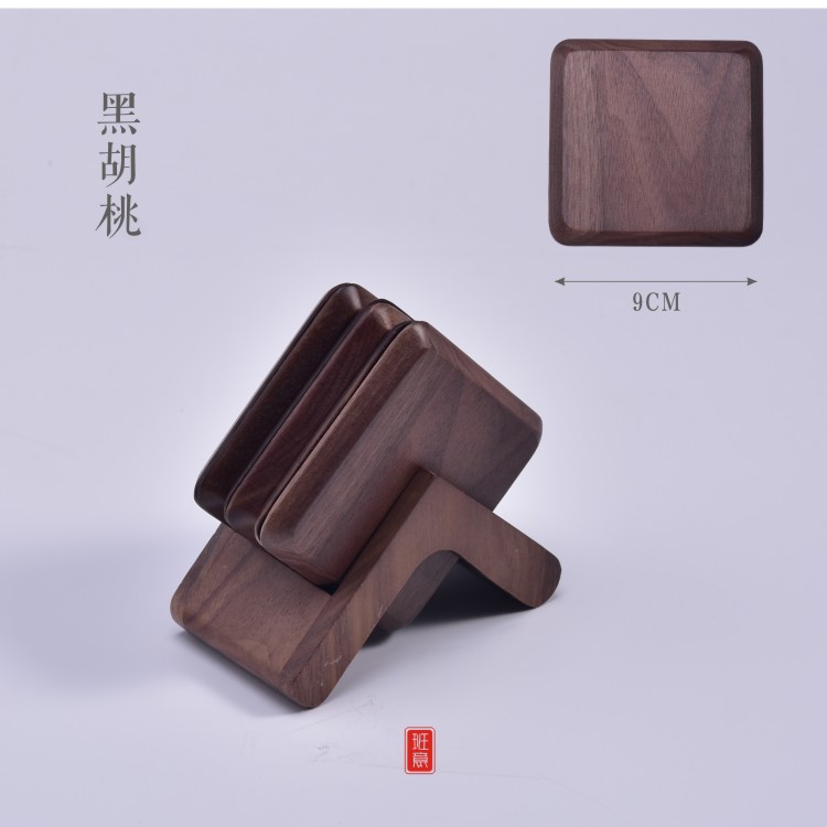 黑胡桃木櫸木杯墊隔熱墊創意茶道方形茶墊木質茶托咖啡水杯杯托1入