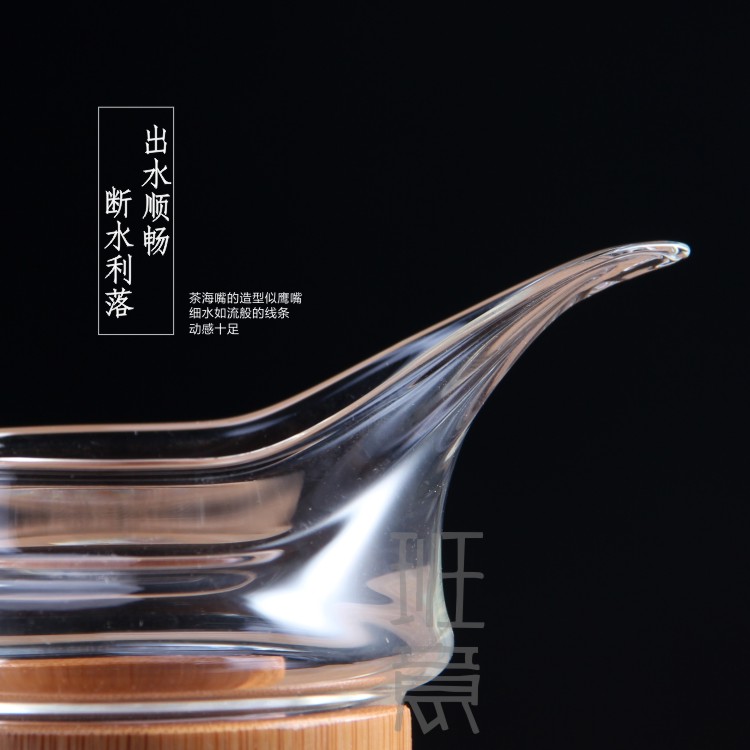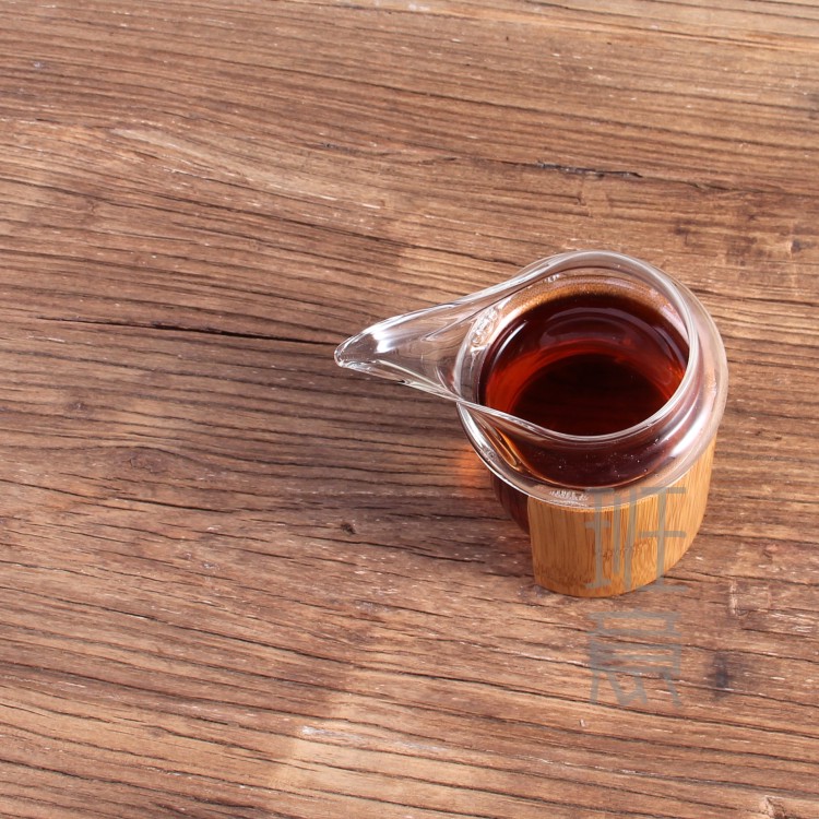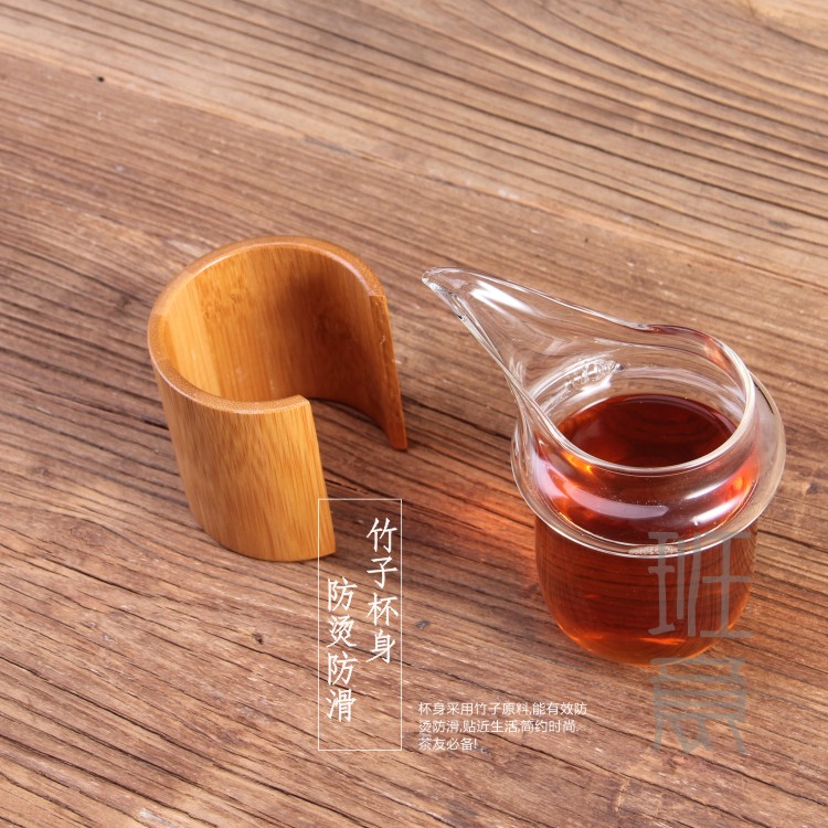 鷹嘴竹子竹圍公杯 玻璃公道杯 耐熱玻璃茶海竹制公杯分茶器1入