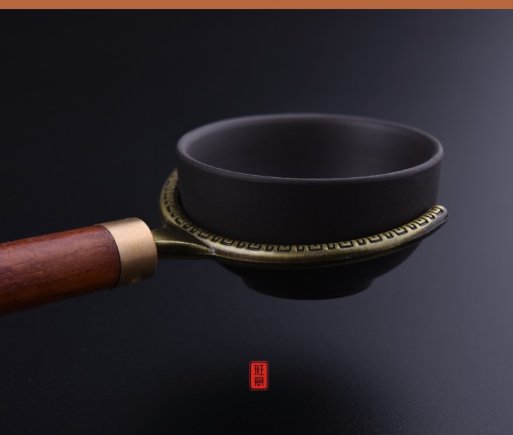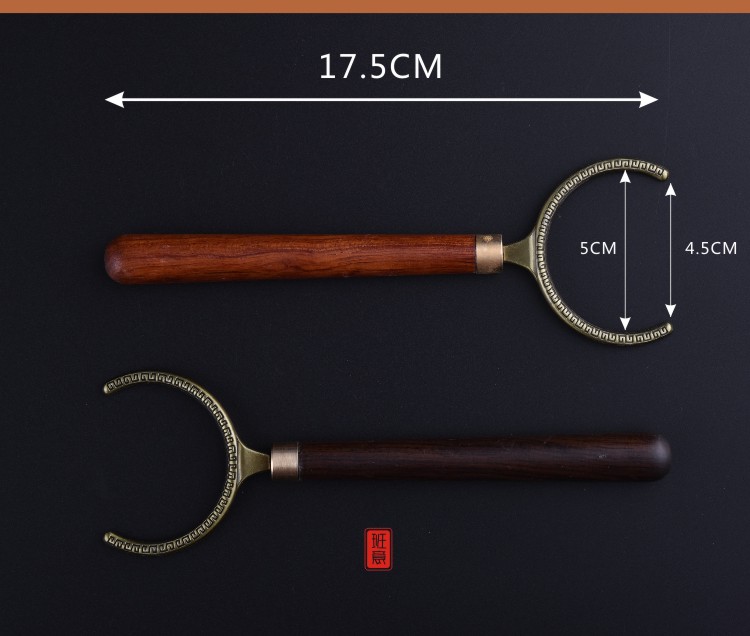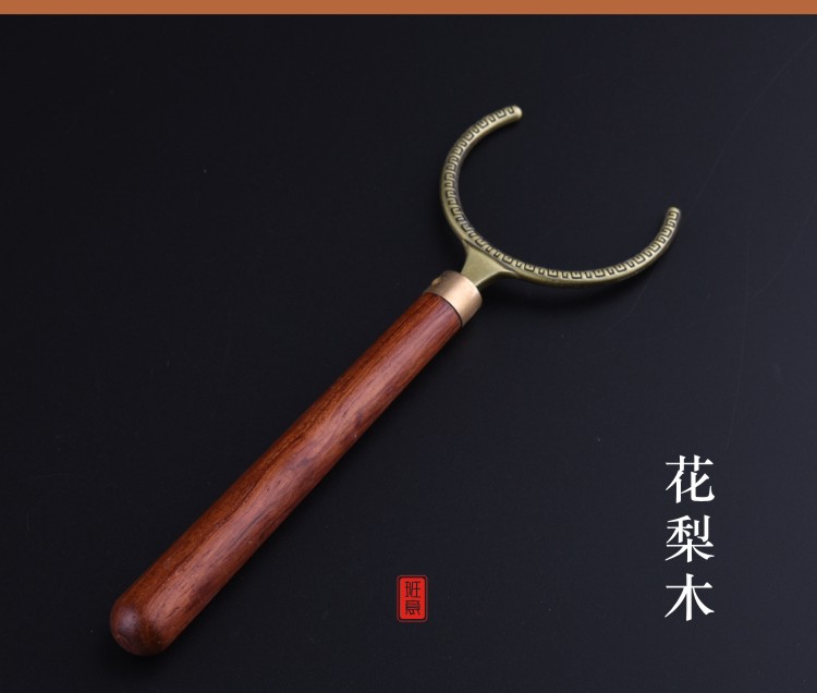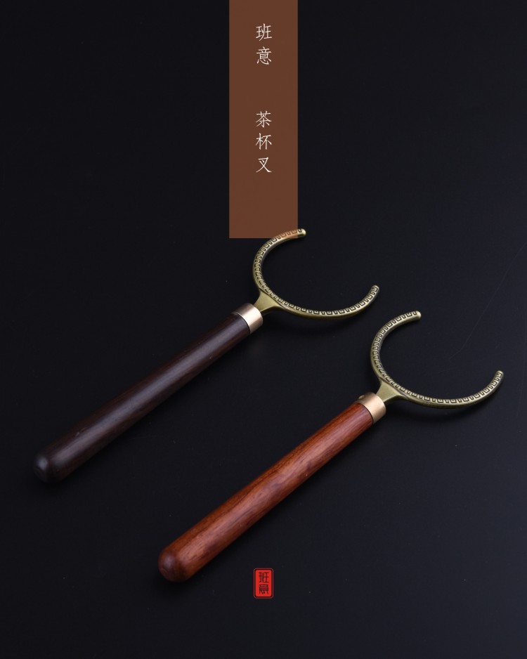 黑檀木茶杯叉子杯托 花梨銅茶托大小號功夫茶道 防燙杯夾茶夾蛋撻1入