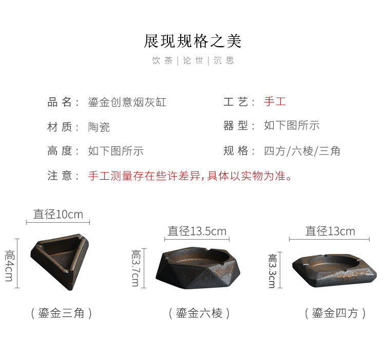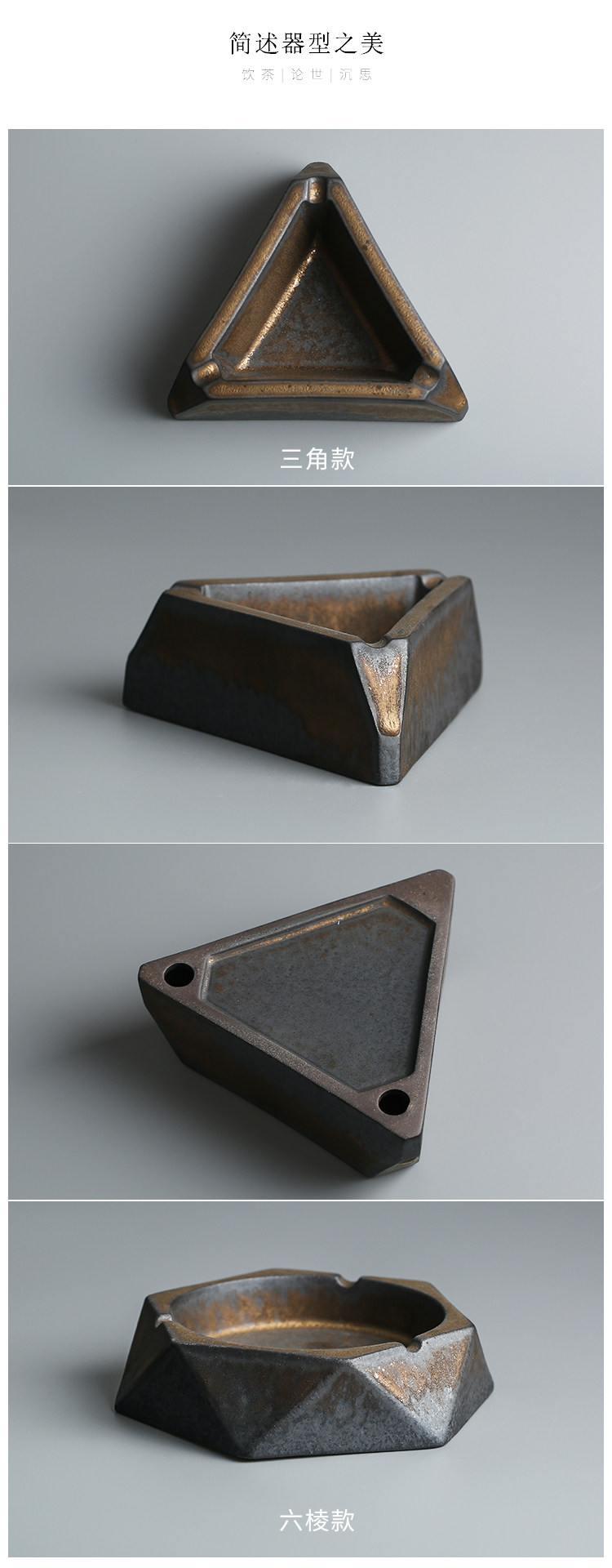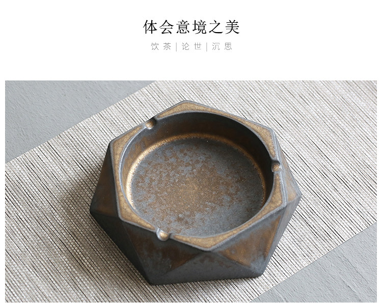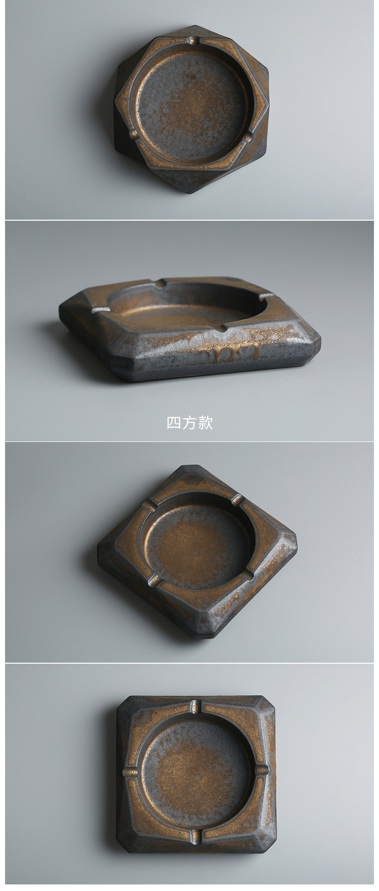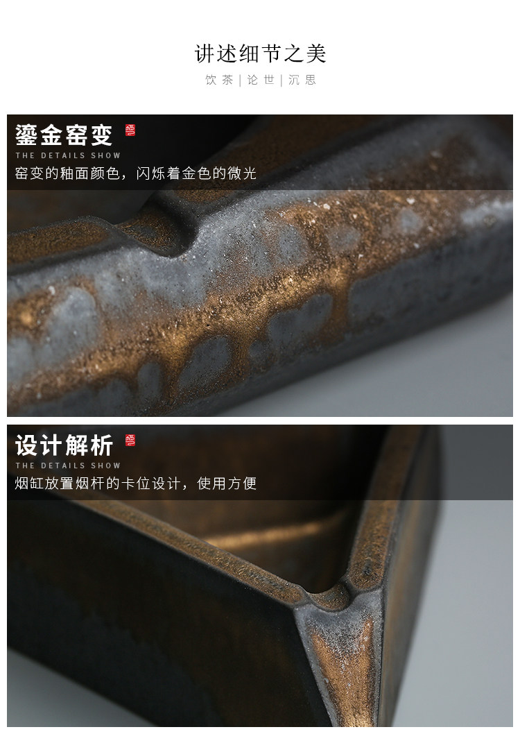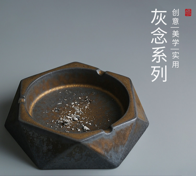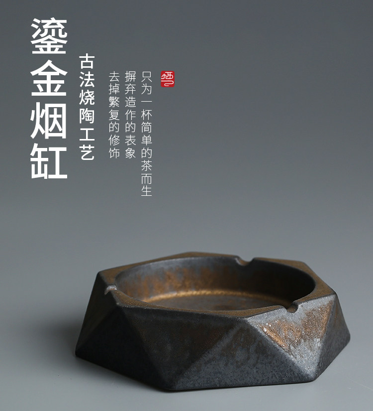 棲鳳居 灰念鎏金陶瓷煙灰缸創意粗陶居家辦公室復古個性煙缸擺件1入