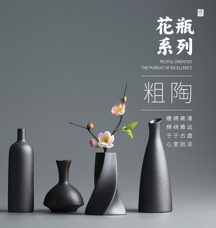 棲鳳居禪意花器 手工粗陶花瓶日式陶瓷花插 茶桌小花插工藝品擺件1入