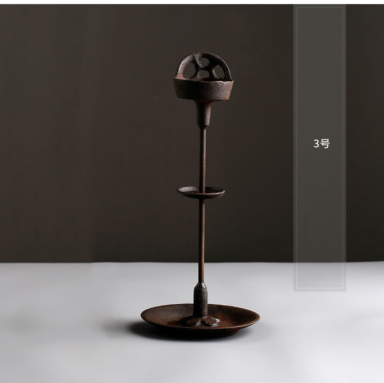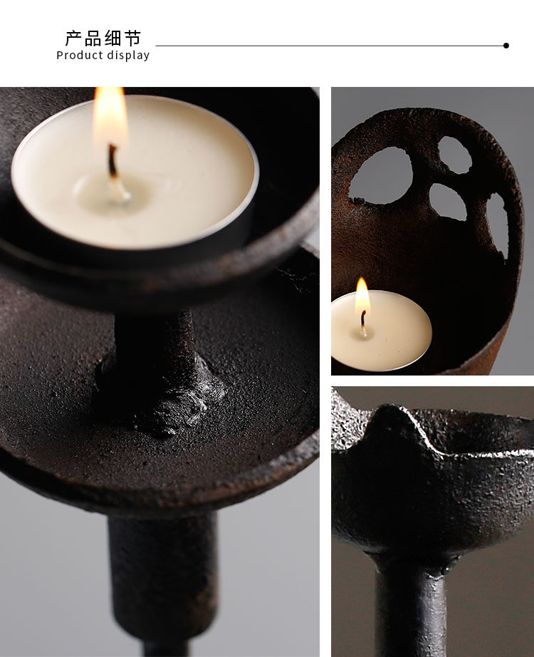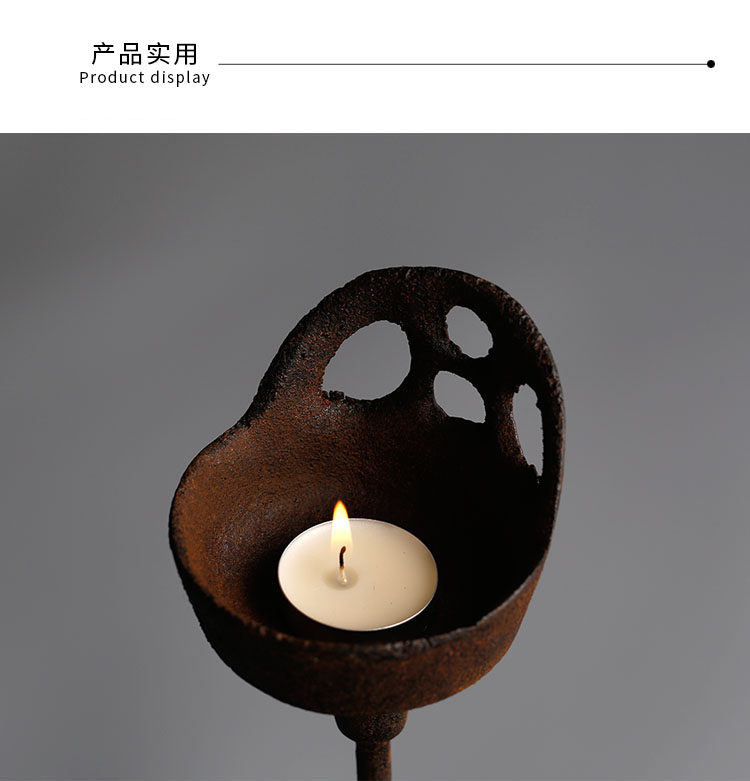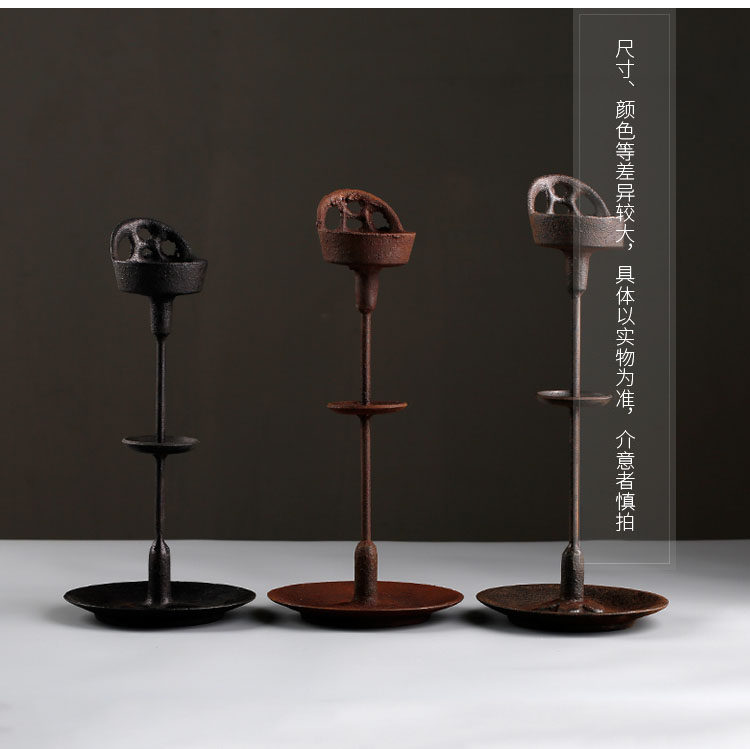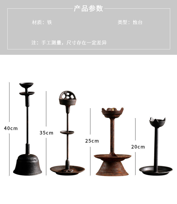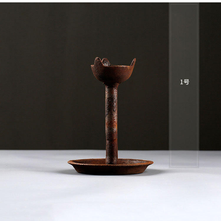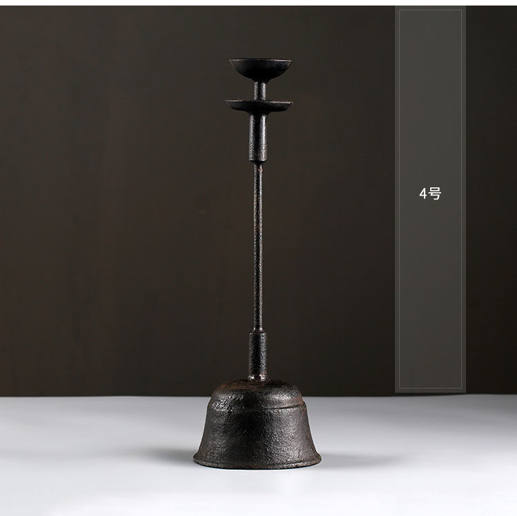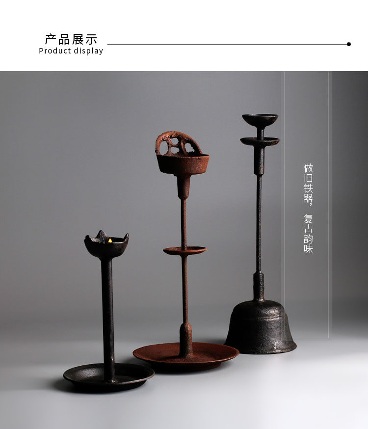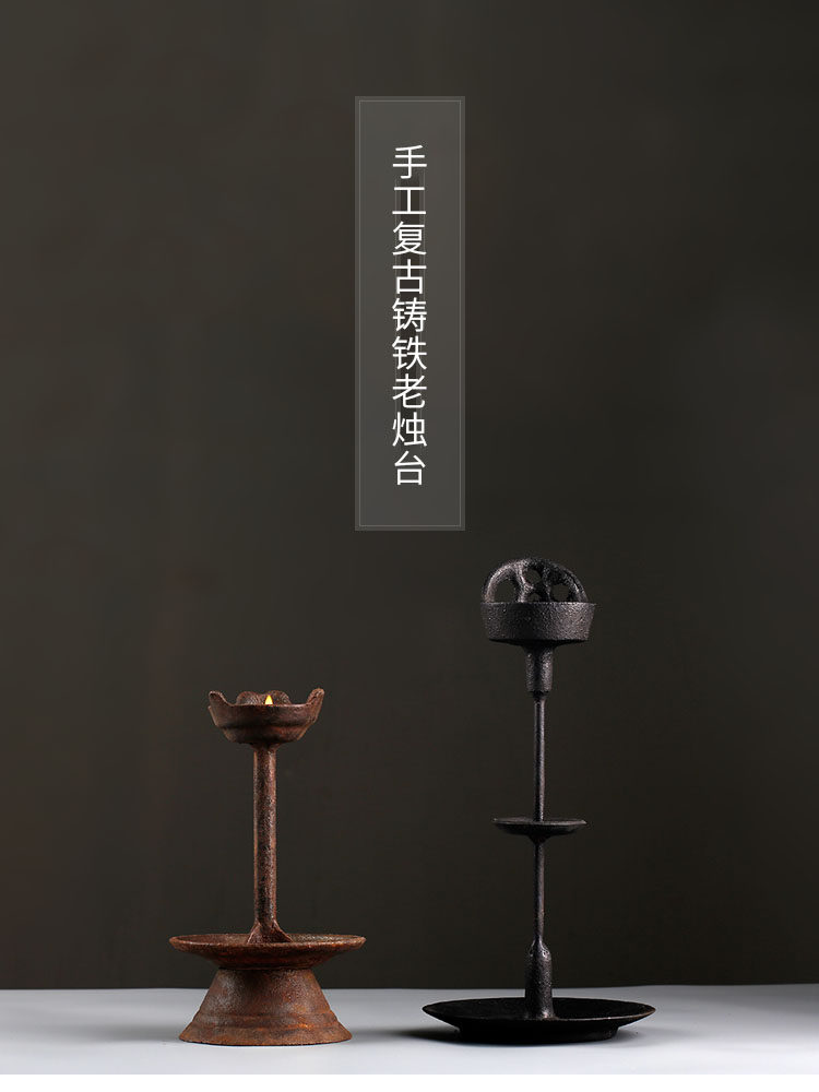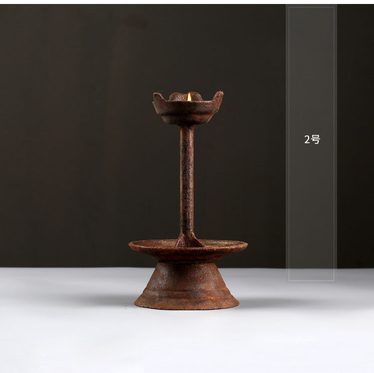 棲鳳居手工復古鑄鐵老燭臺油燈舊物中式禪意茶道燈家居裝飾擺件1入