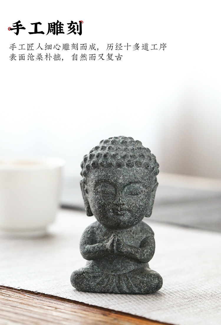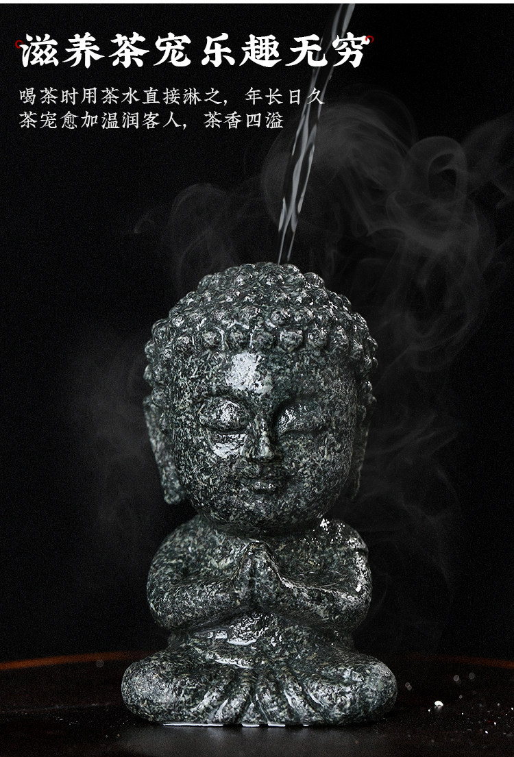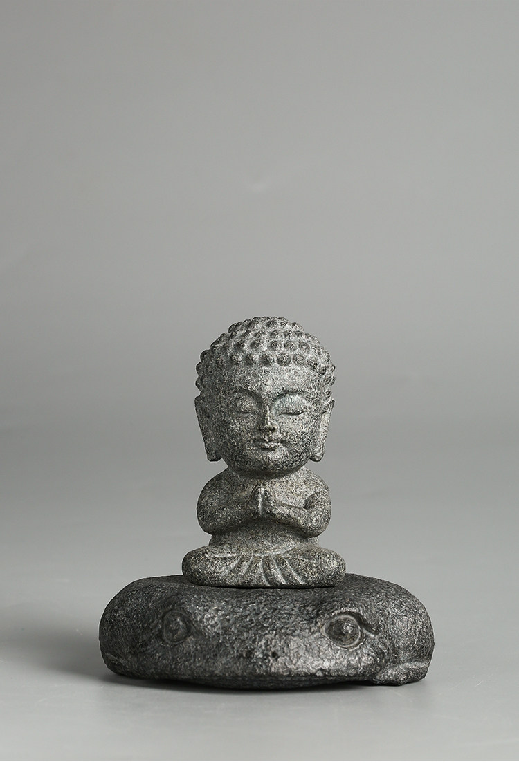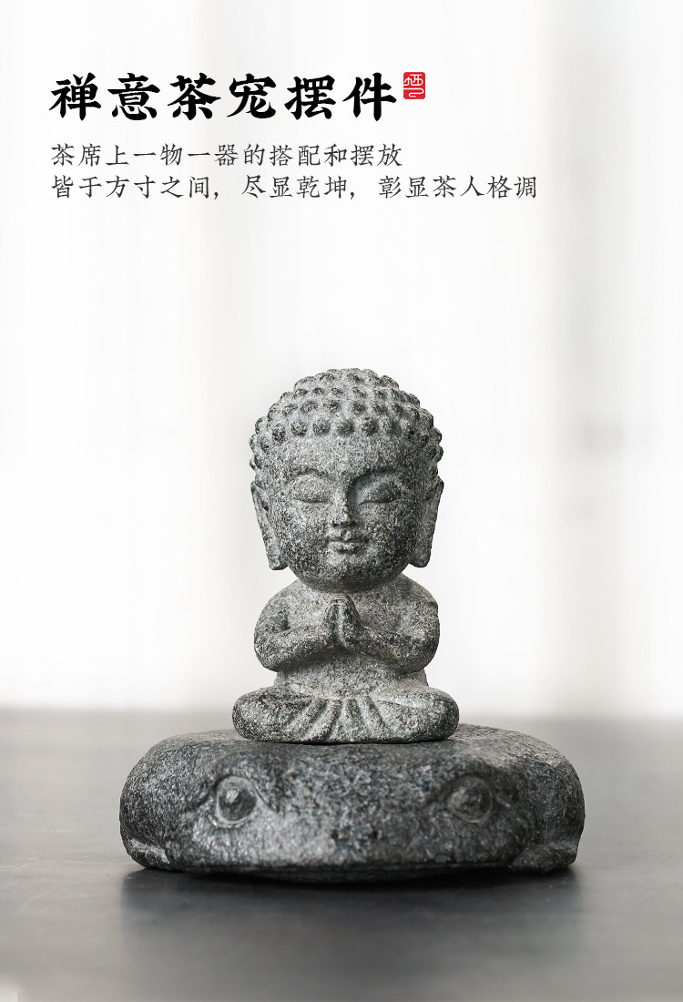 棲鳳居禪意坐佛茶寵純全手工烏金石創意茶盤擺件青石功夫茶玩茶趣1入