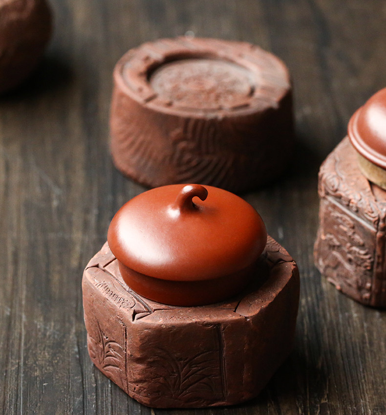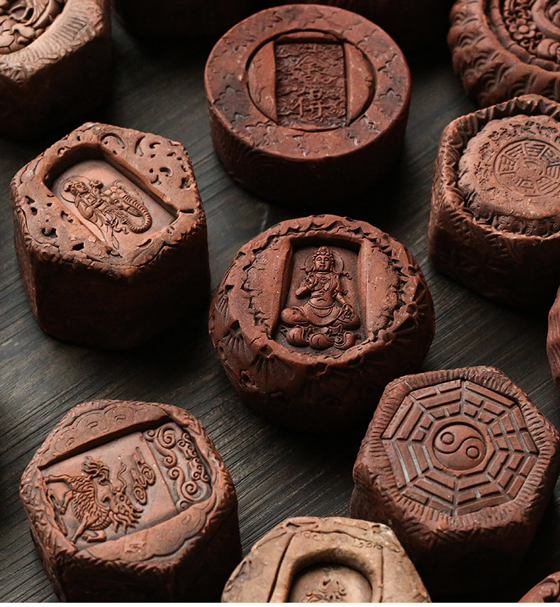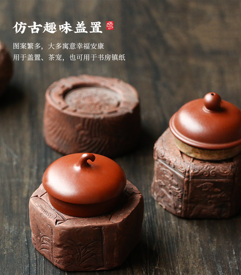 棲鳳居仿古趣味蓋置復古風磚雕茶寵擺件功夫茶具茶桌茶道零配件1入