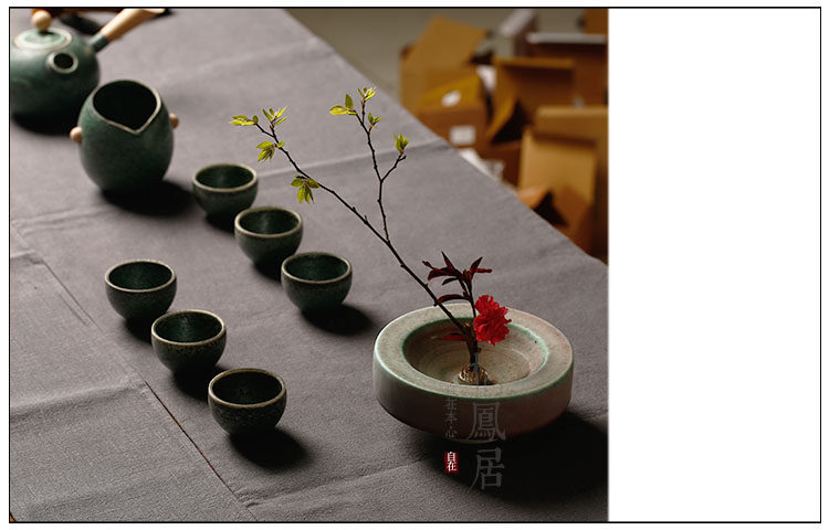 棲鳳居插花花器 日式手工陶瓷插花器皿花道花藝 茶桌裝飾花插擺件1入
