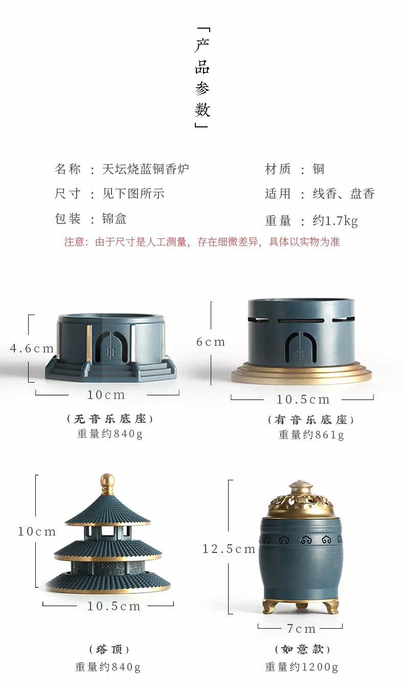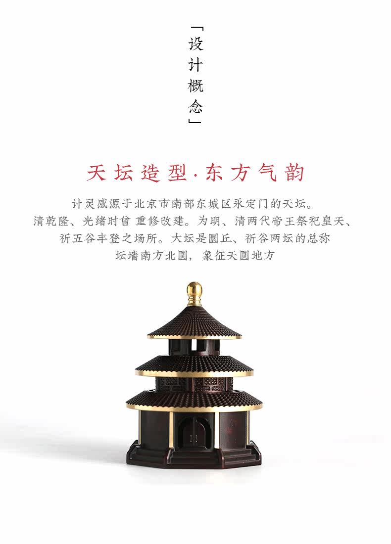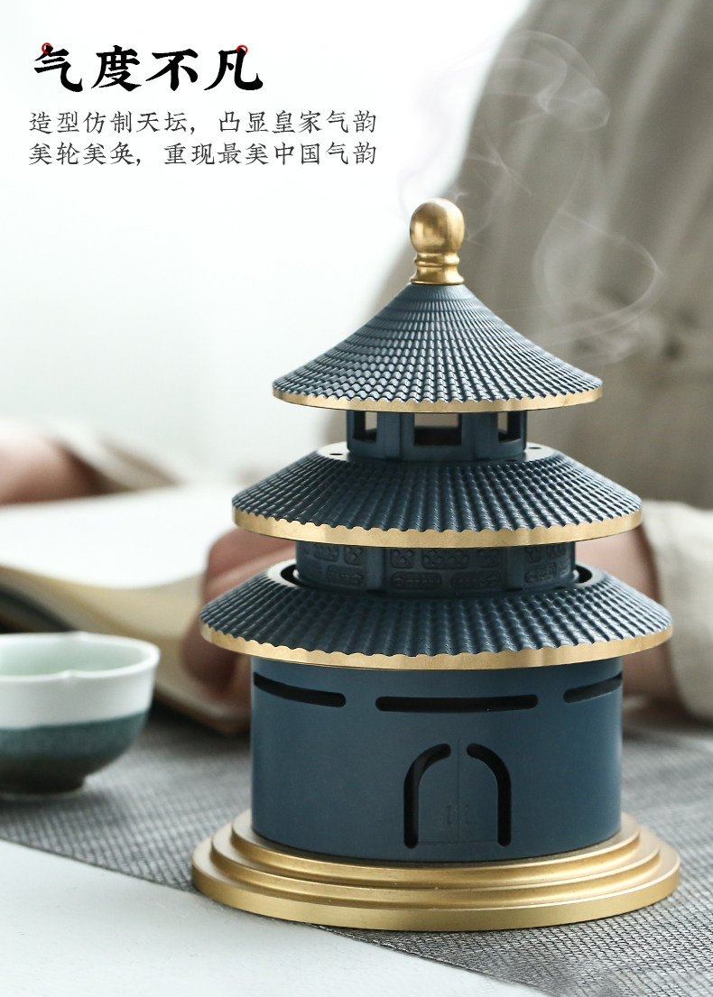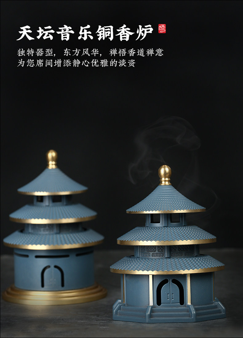 棲鳳居 純銅創意天壇檀香爐大號茶道擺件室內香薰爐家用音樂香爐1入