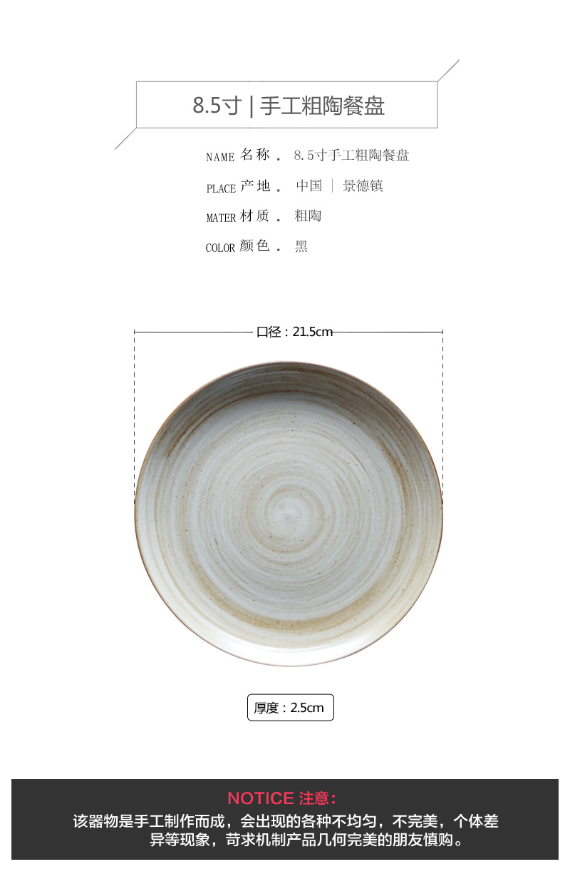 [2]日式復古粗陶菜盤懷舊簡約黑色壽司沙拉盤8.5寸釉下彩景德鎮盤子1入