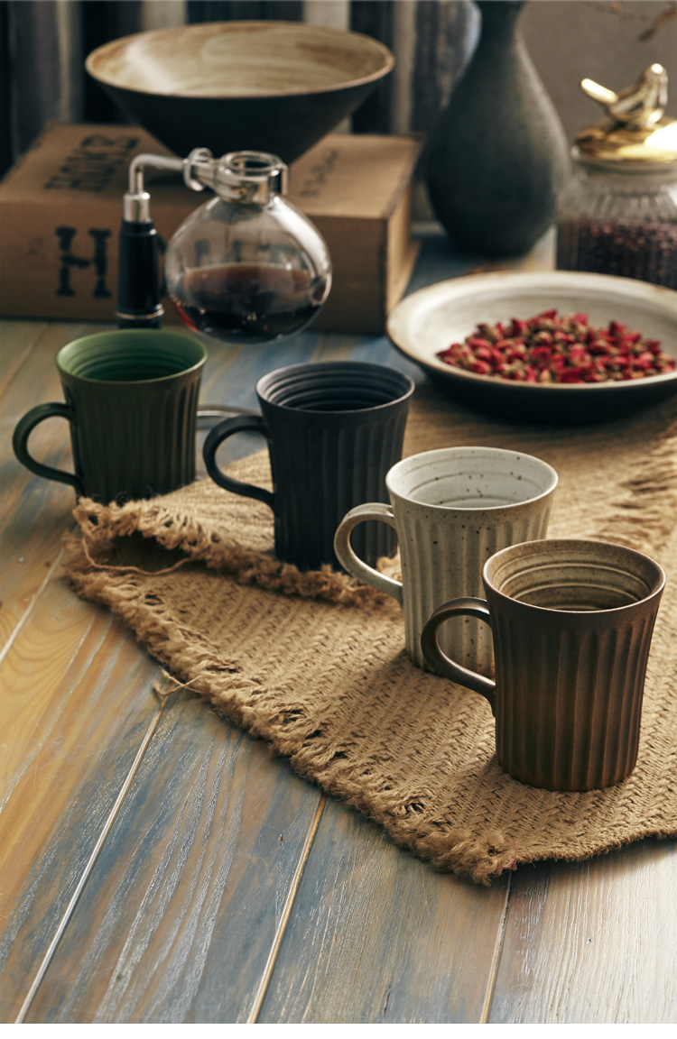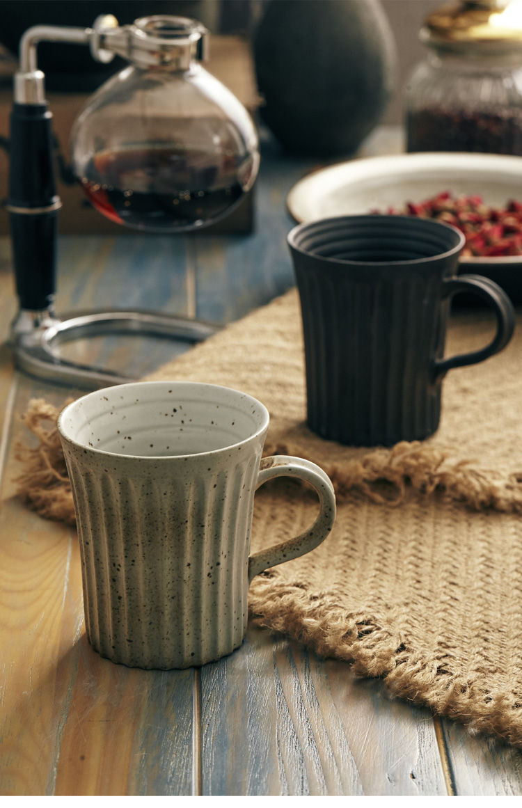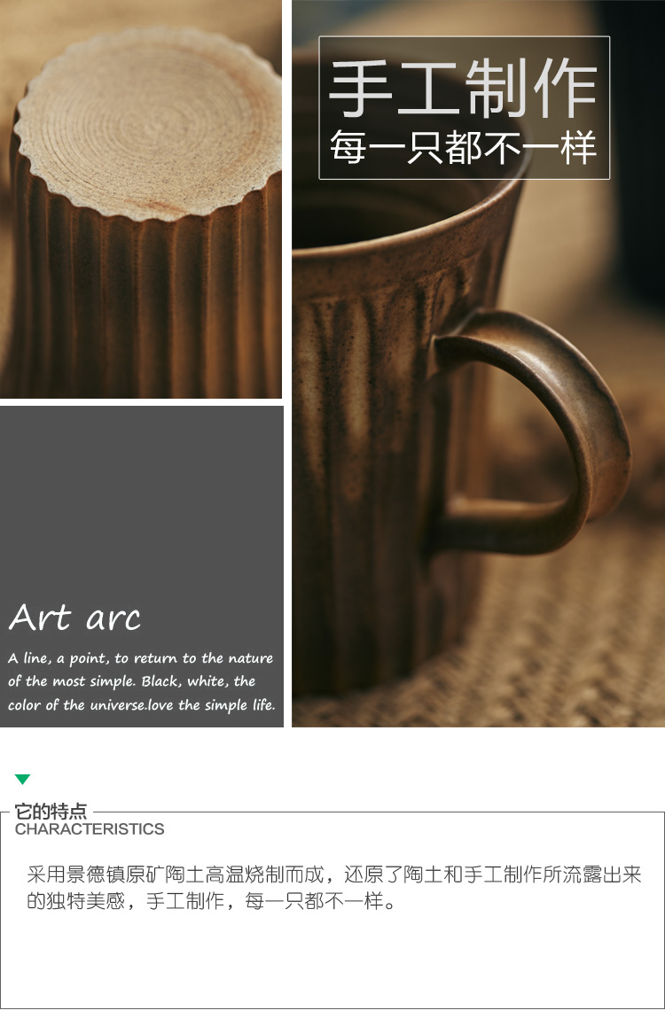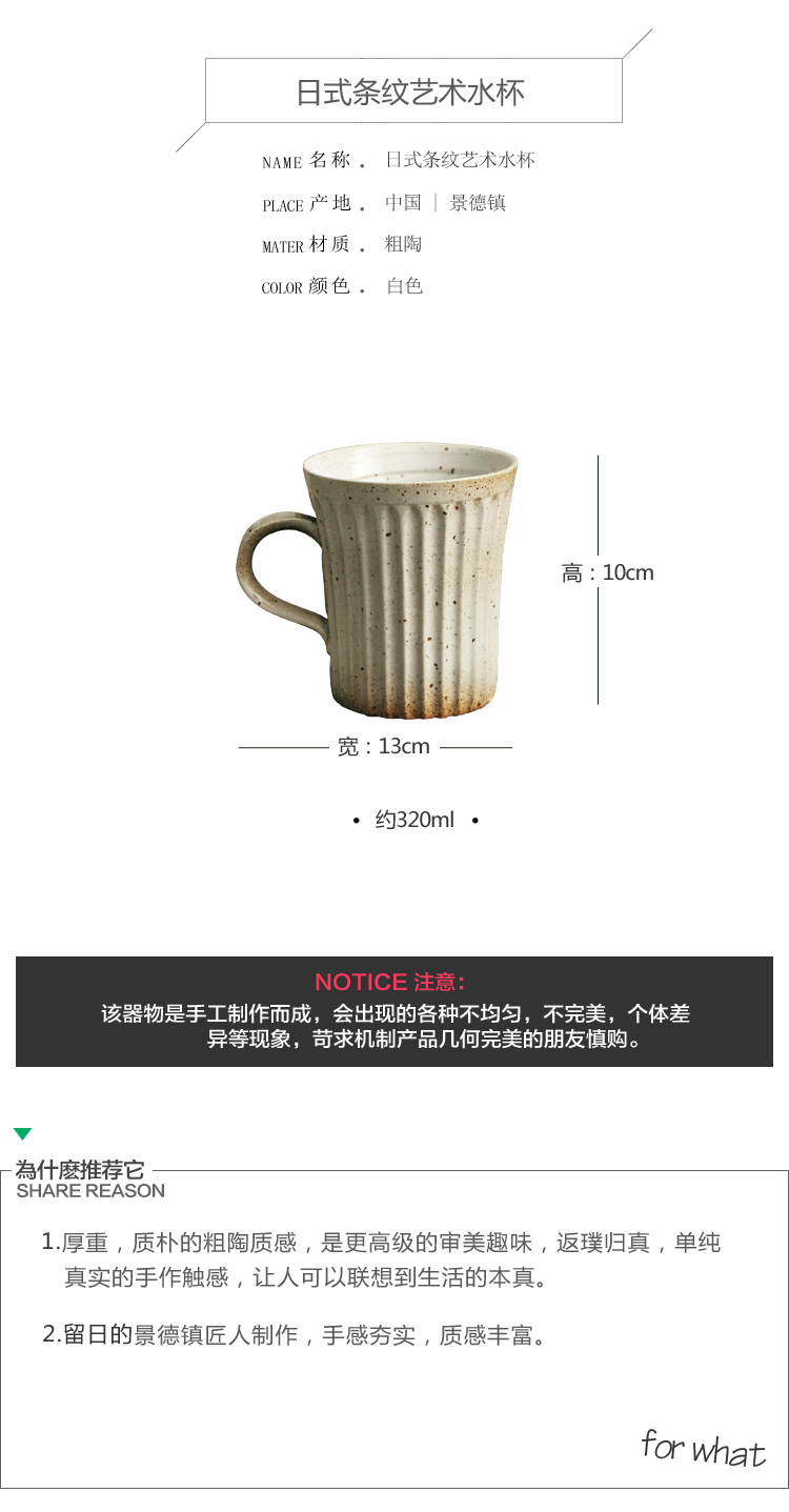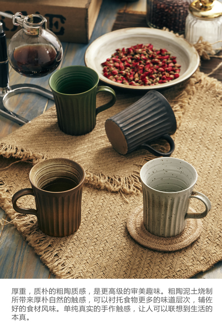 日式復古條紋茶水創意懷舊咖啡杯 純手工粗陶馬克杯 文藝范1入