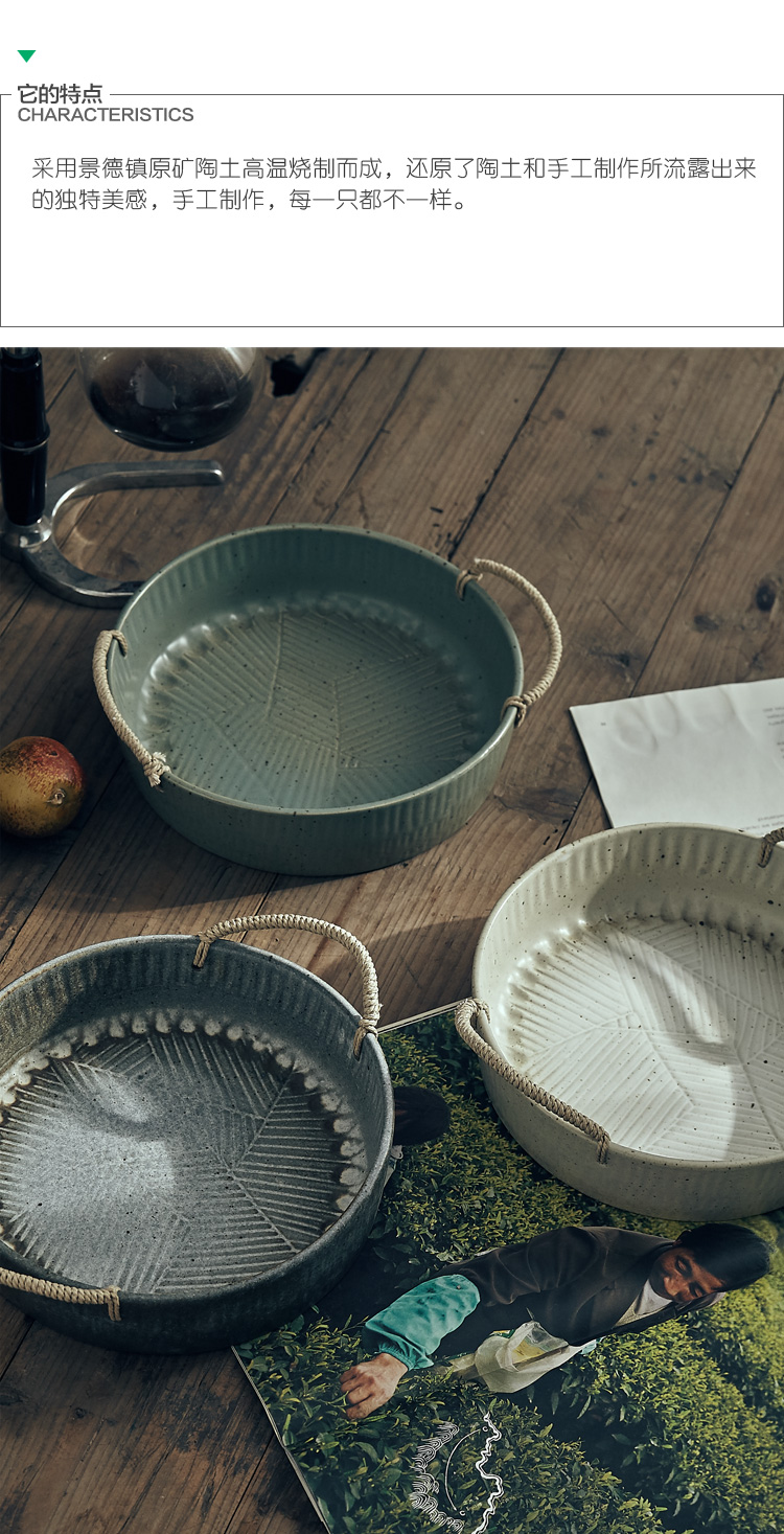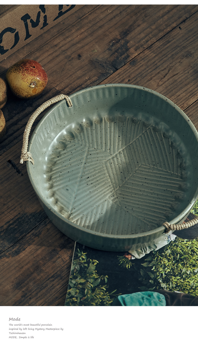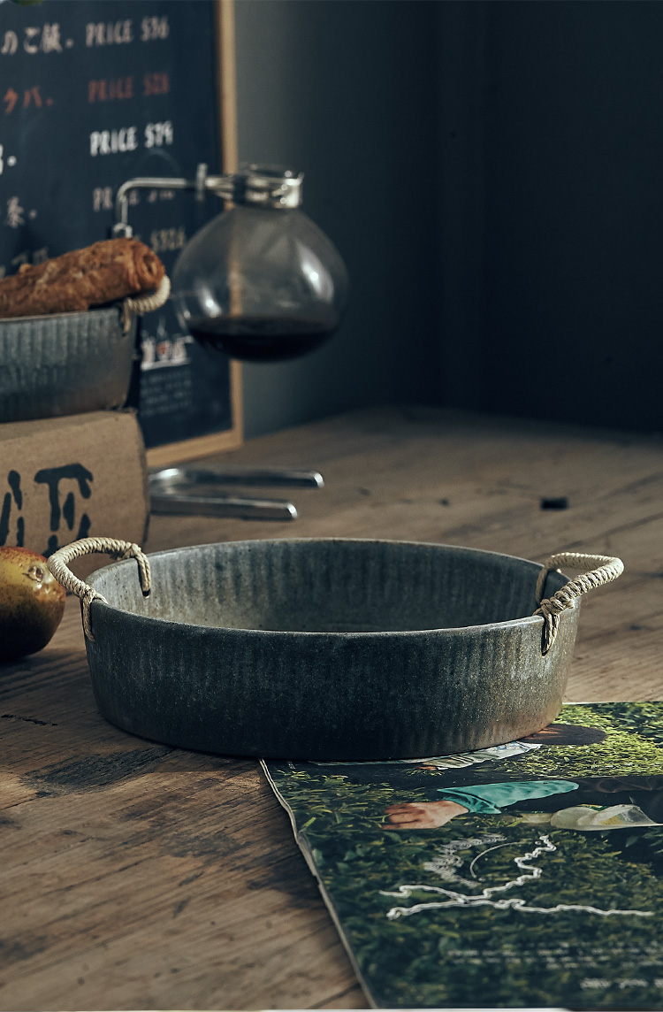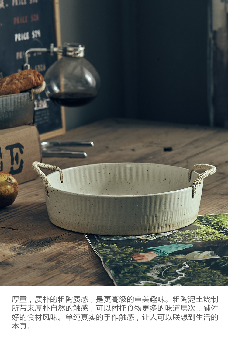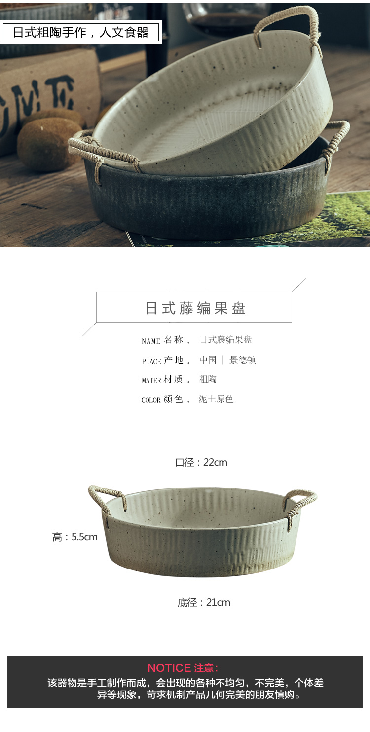 [2]日式果盤民宿復古風托盤茶室裝飾茶食水果糕點盤粗陶大菜碗1入