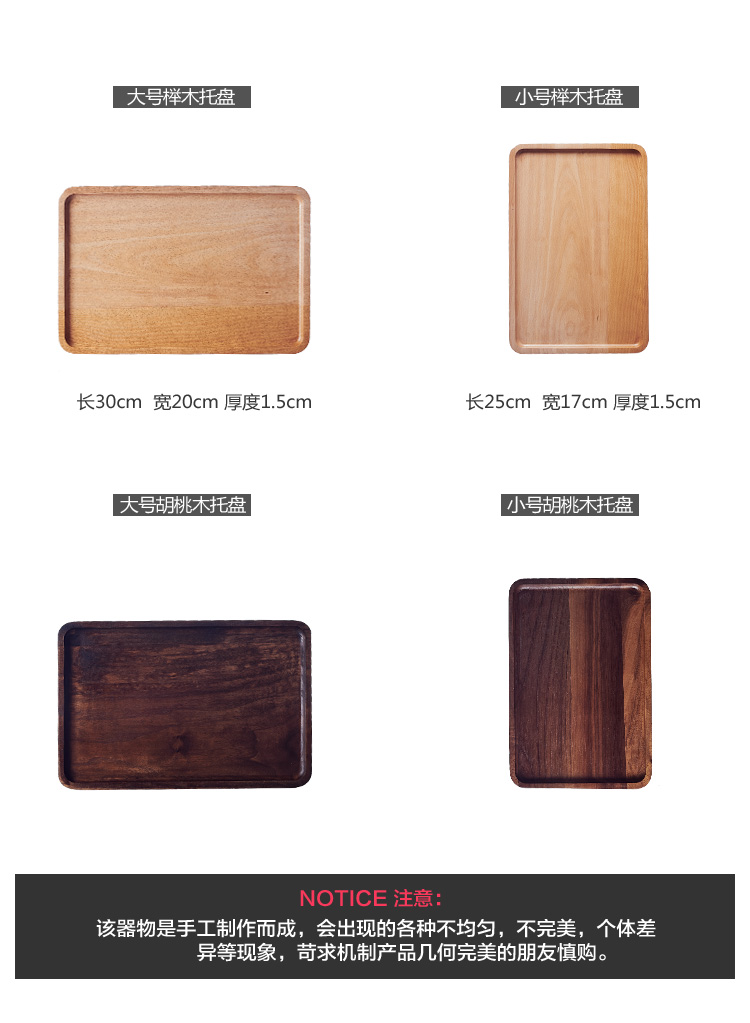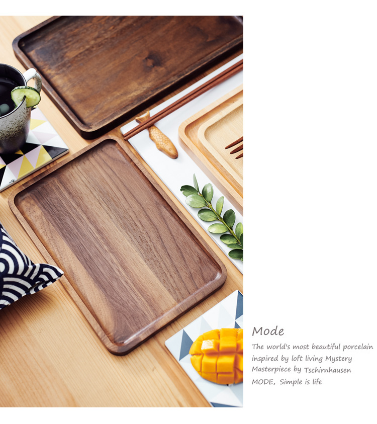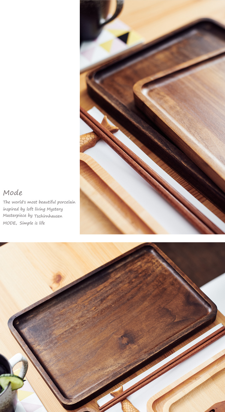 木質茶托盤黑胡桃櫸木托盤長方形點心盤餐盤茶托水杯托盤1入