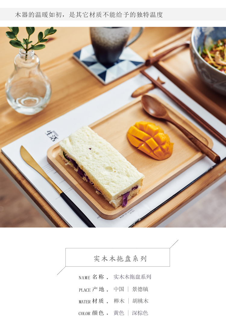 [2]木質茶托盤黑胡桃櫸木托盤長方形點心盤餐盤茶托水杯托盤1入