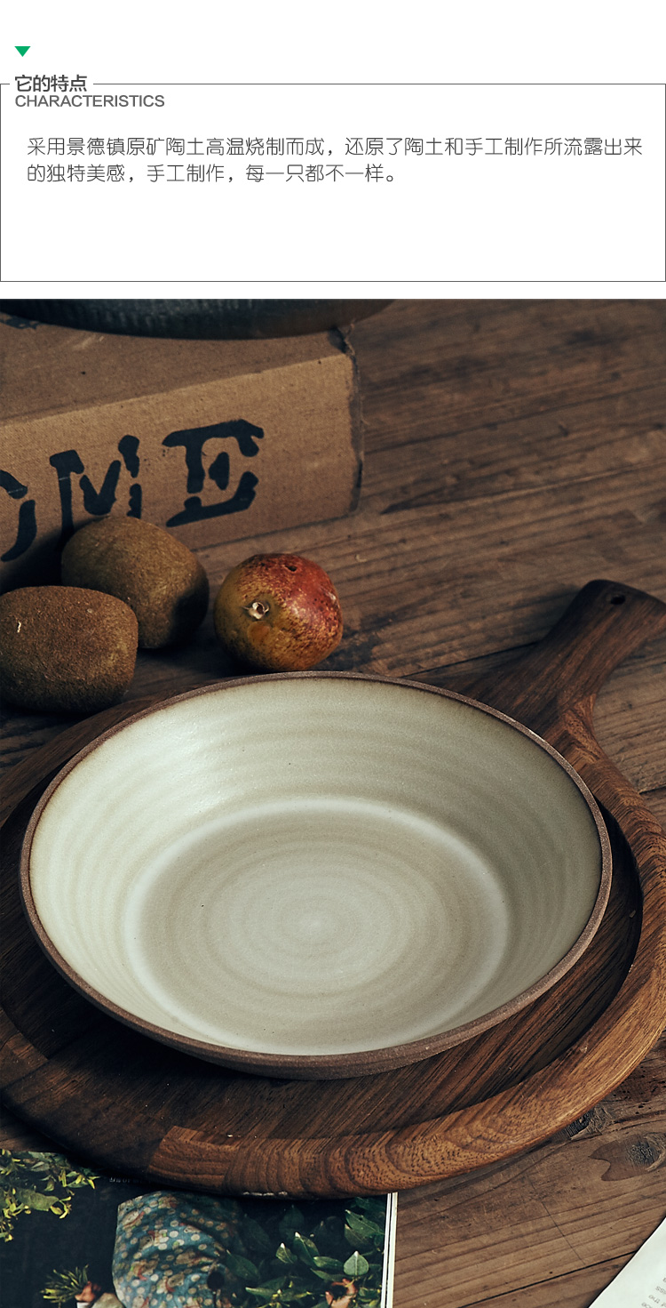 [2]粗陶菜盤碟子商用日式壽司點心盤子復古老式意面盤特色炒飯盤子1入