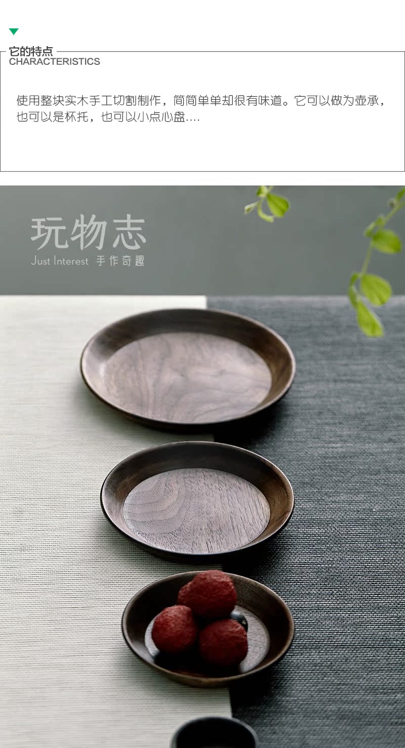 手工黑胡桃小木盤甜品壽司盤日式茶點心盤茶杯茶壺托盤1入