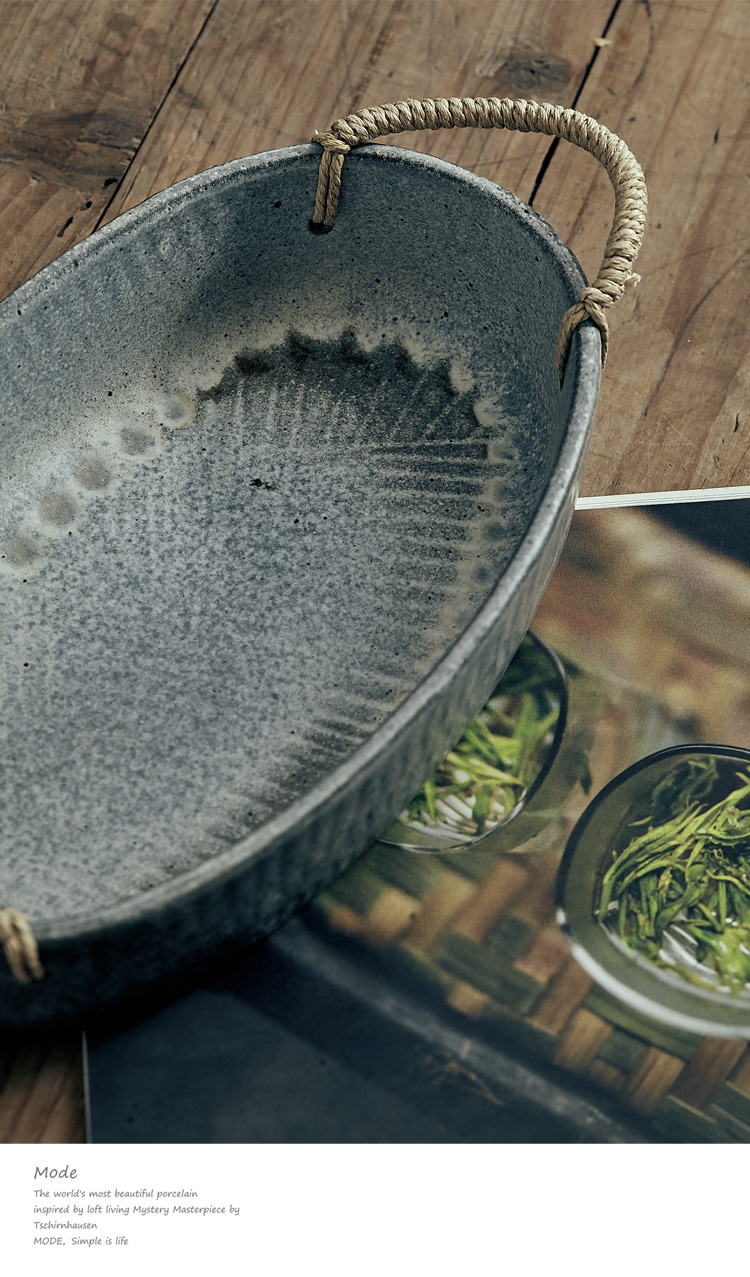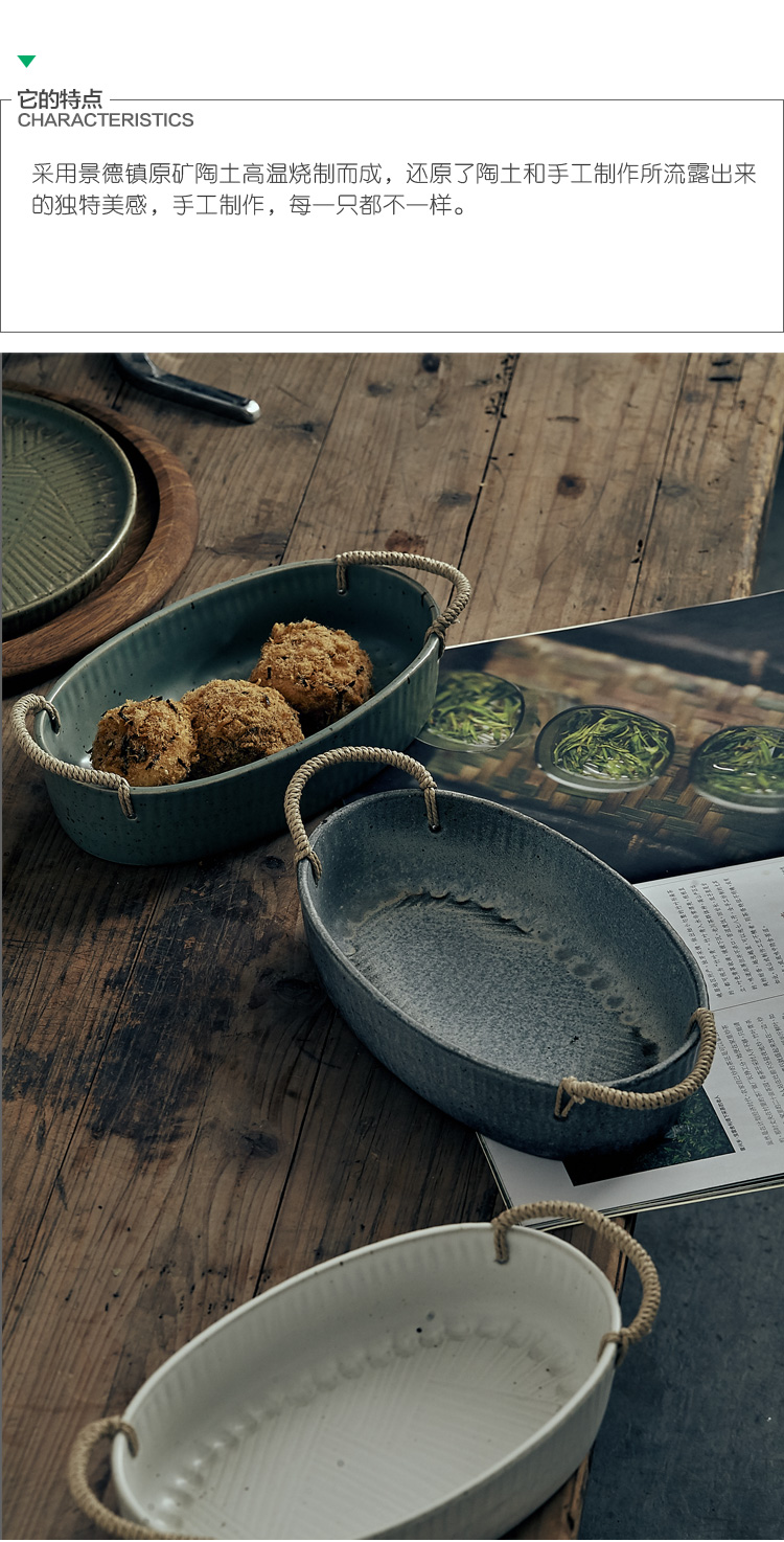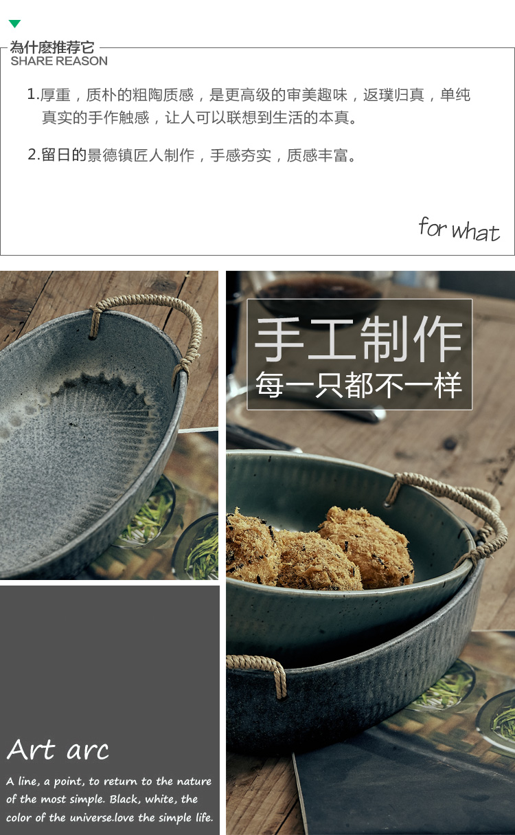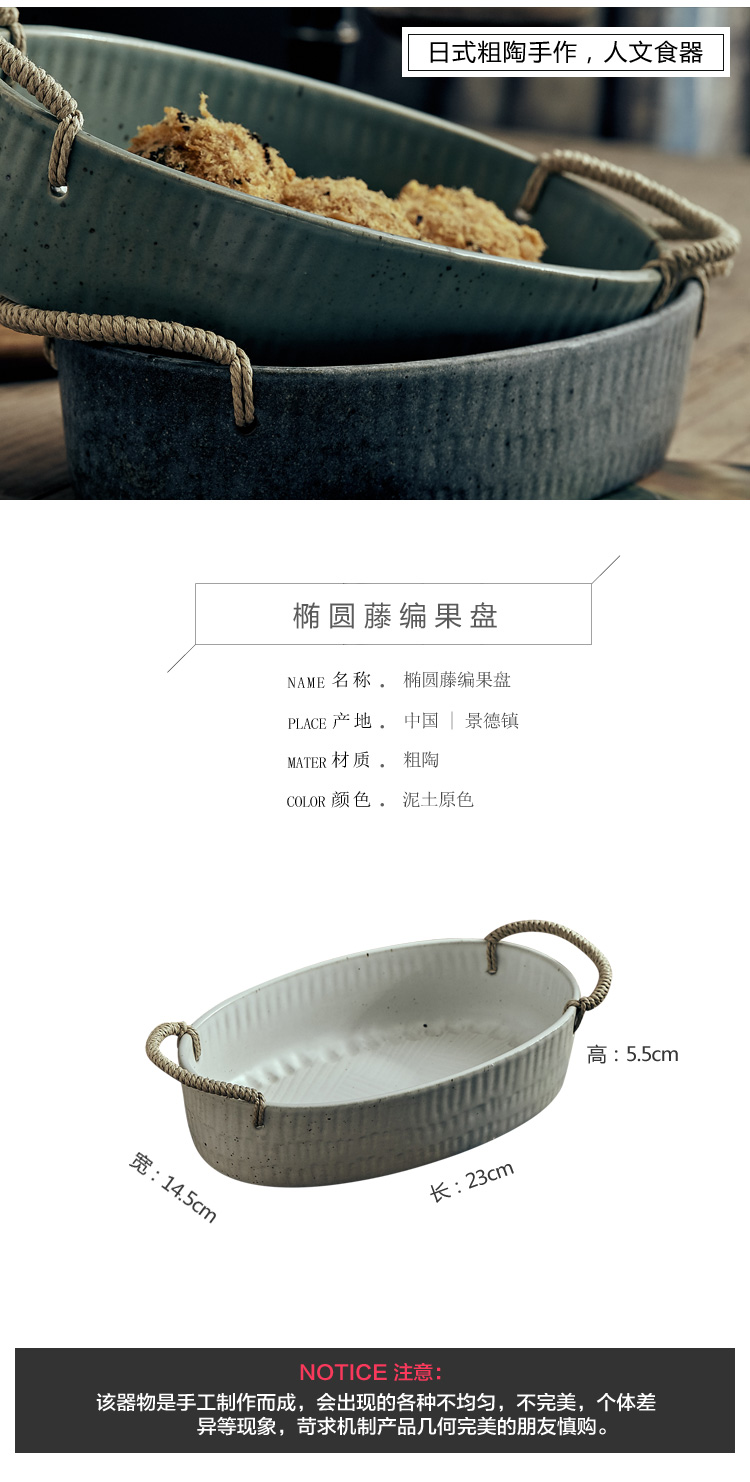 [2]日式復古粗陶托盤 茶室藤編水果糕點盤酒店菜盤家用 景德鎮純手工1入