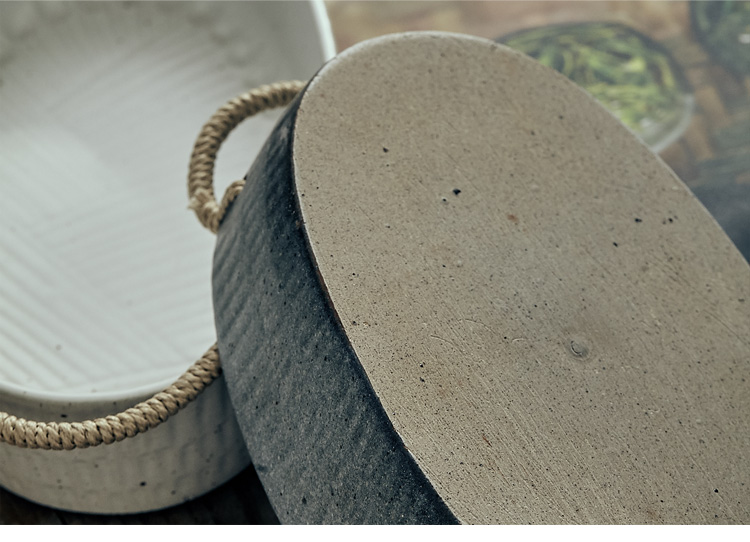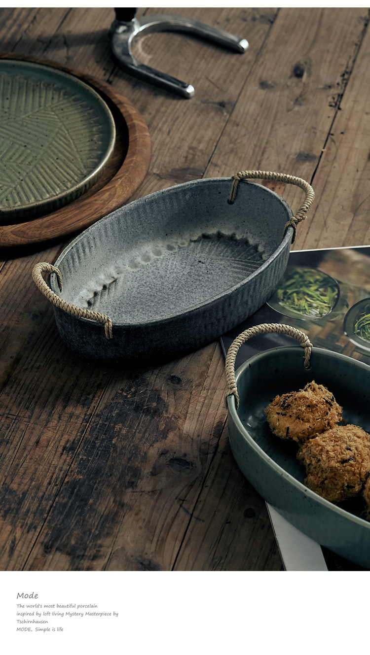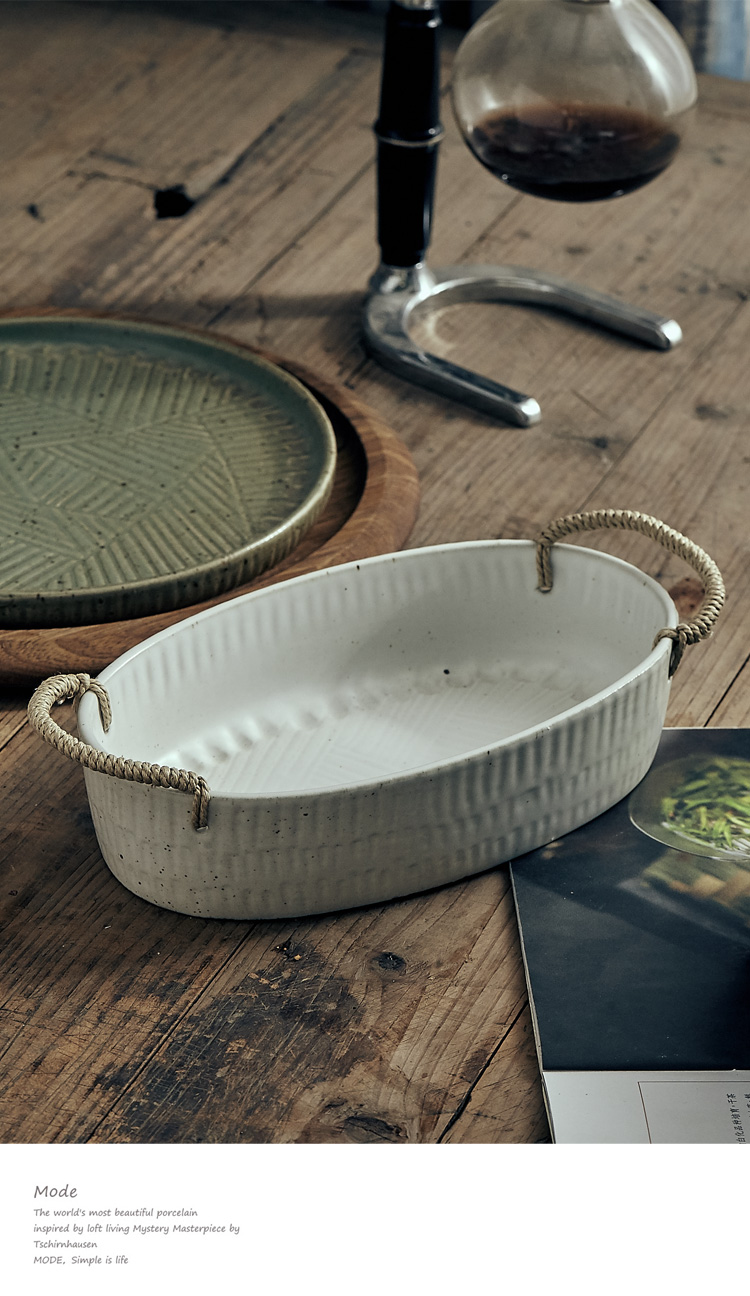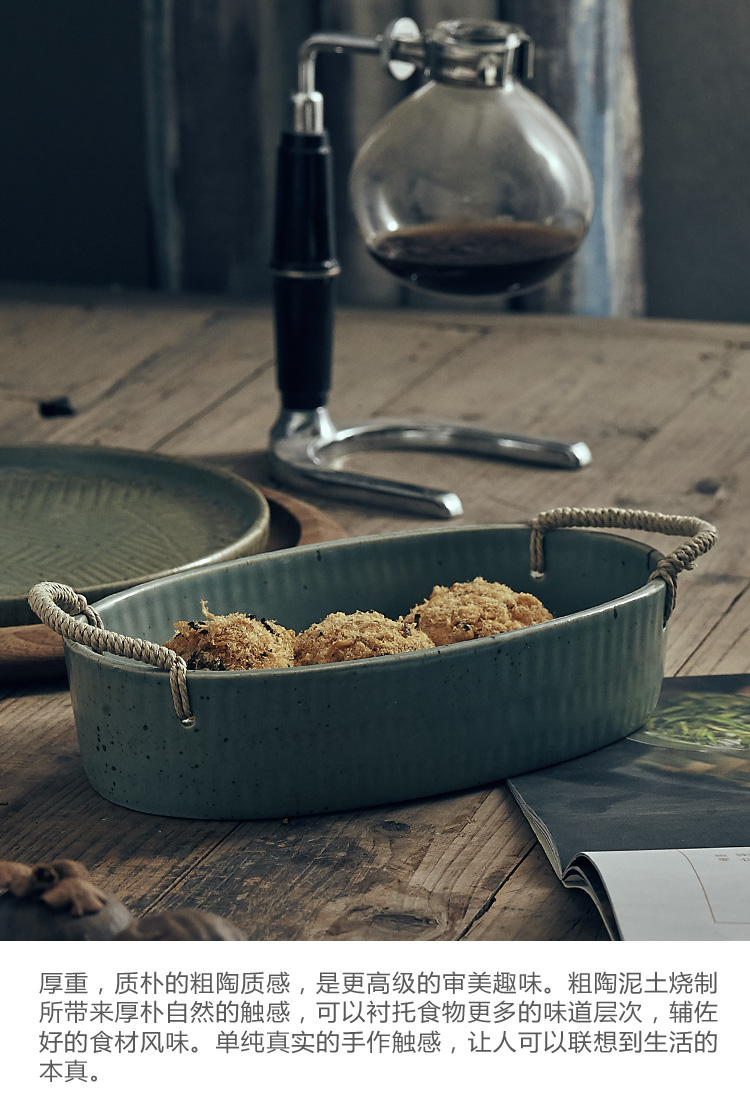 [2]日式復古粗陶托盤 茶室藤編水果糕點盤酒店菜盤家用 景德鎮純手工1入