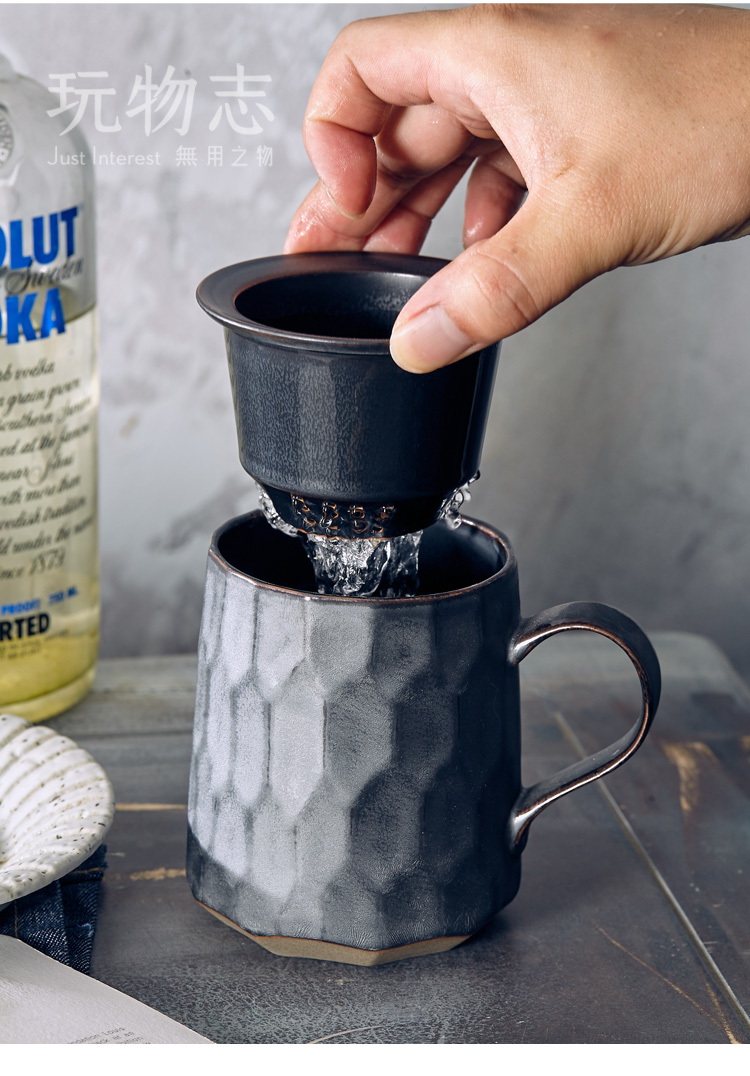 日式禪意茶杯泡茶辦公杯茶水分離陶瓷水杯帶蓋原創設計超酷1入