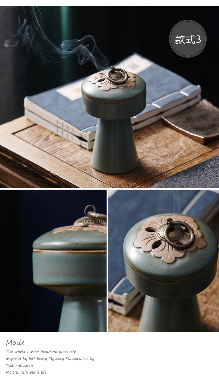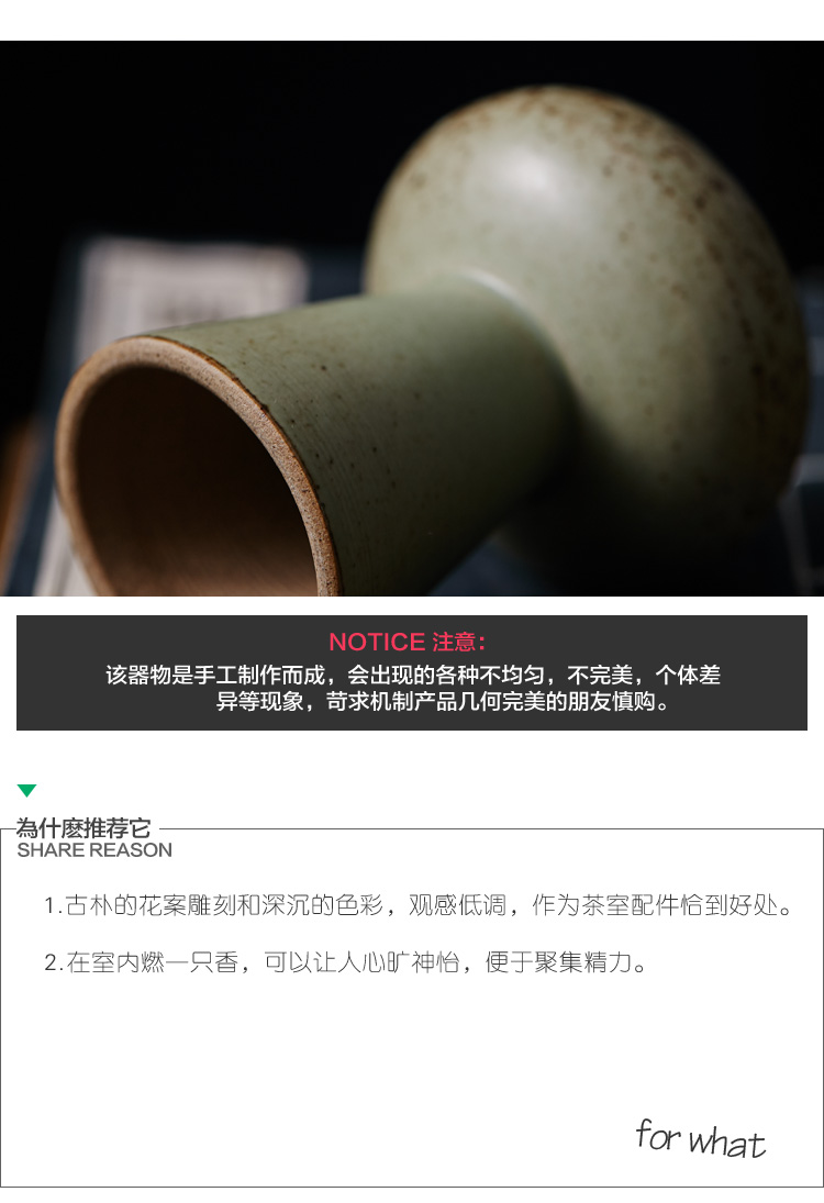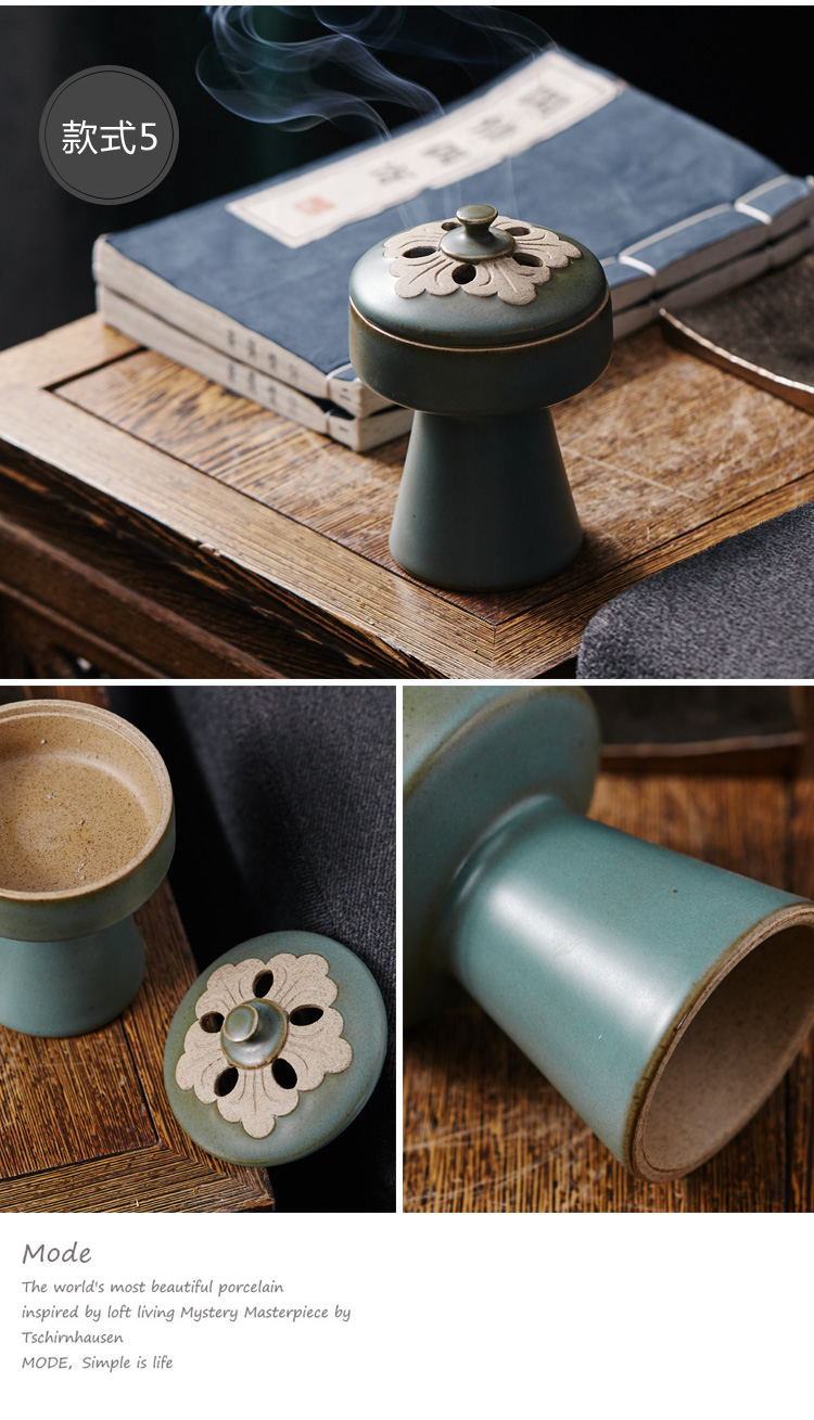 日式立座小香爐陶瓷茶道擺件 香薰爐檀香沉香仿古焚香爐1入