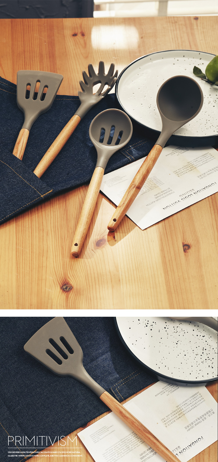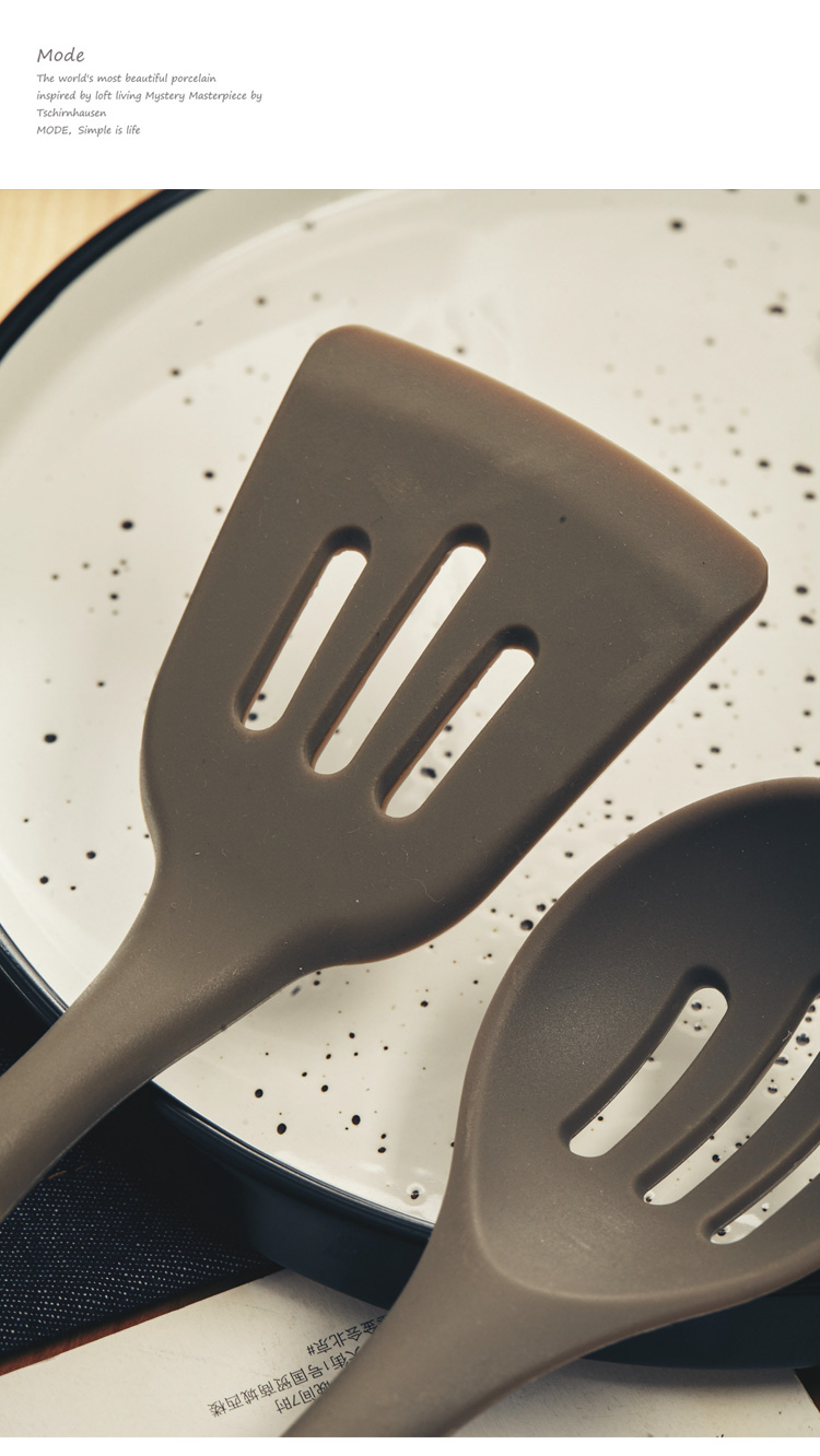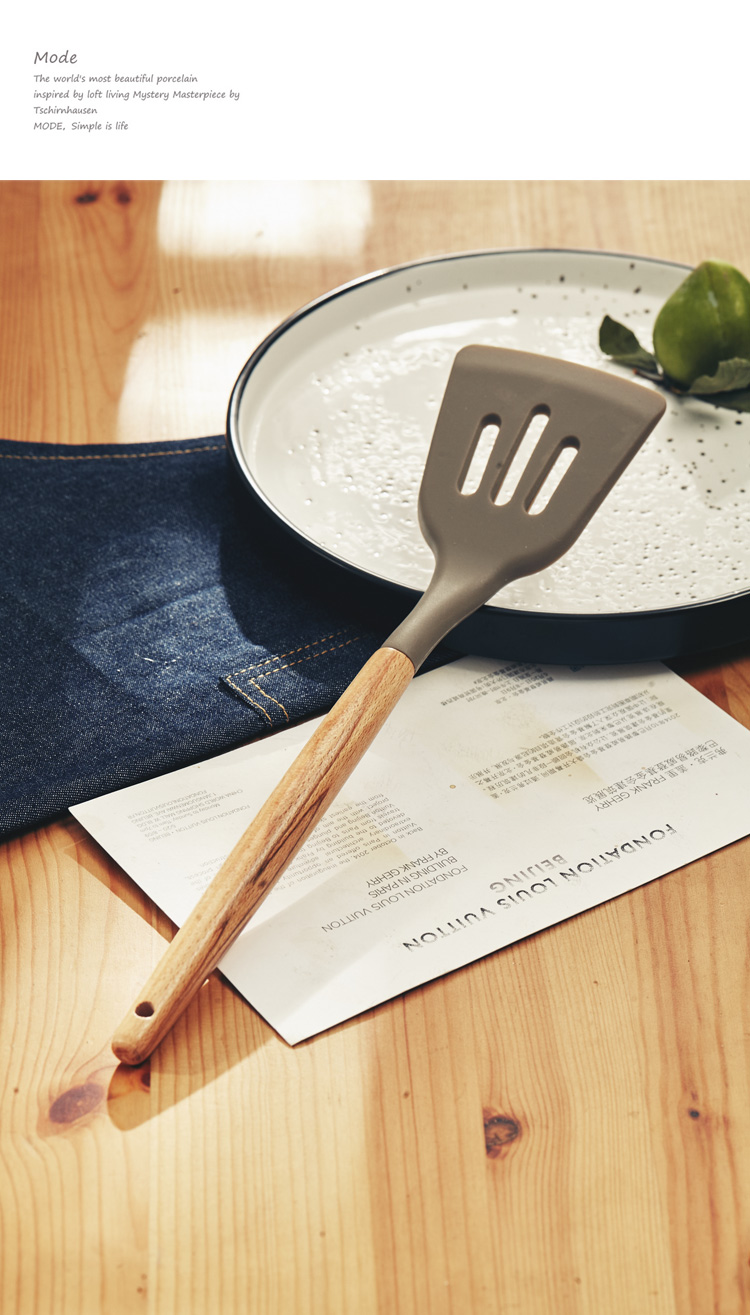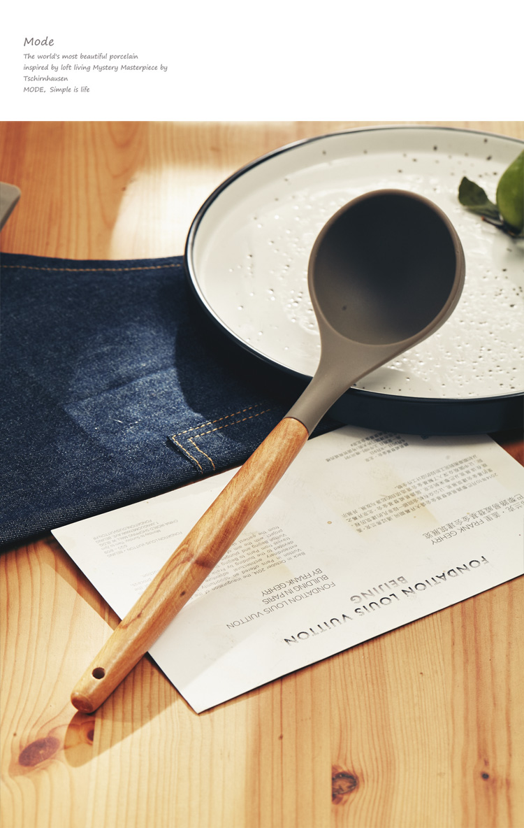 [2]硅膠漏鏟 廚具套裝家用櫸木柄 廚房湯勺 撈面勺漏勺 很好用1入