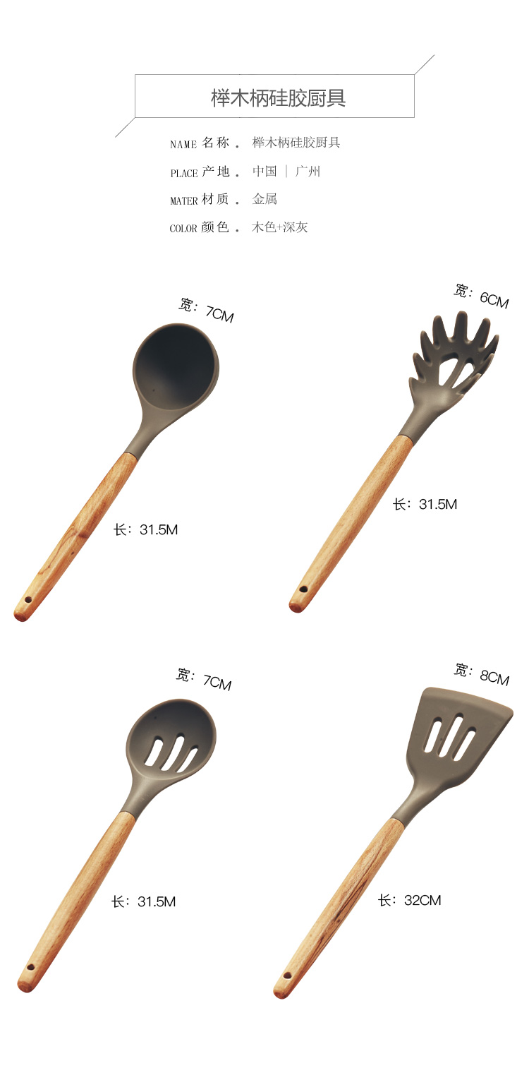 硅膠漏鏟 廚具套裝家用櫸木柄 廚房湯勺 撈面勺漏勺 很好用1入