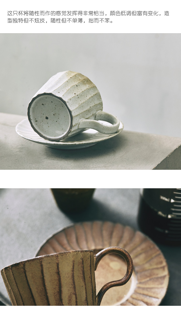 [2]新款意式咖啡杯碟日式復古懷舊手工粗陶條紋花茶牛奶馬克杯1入