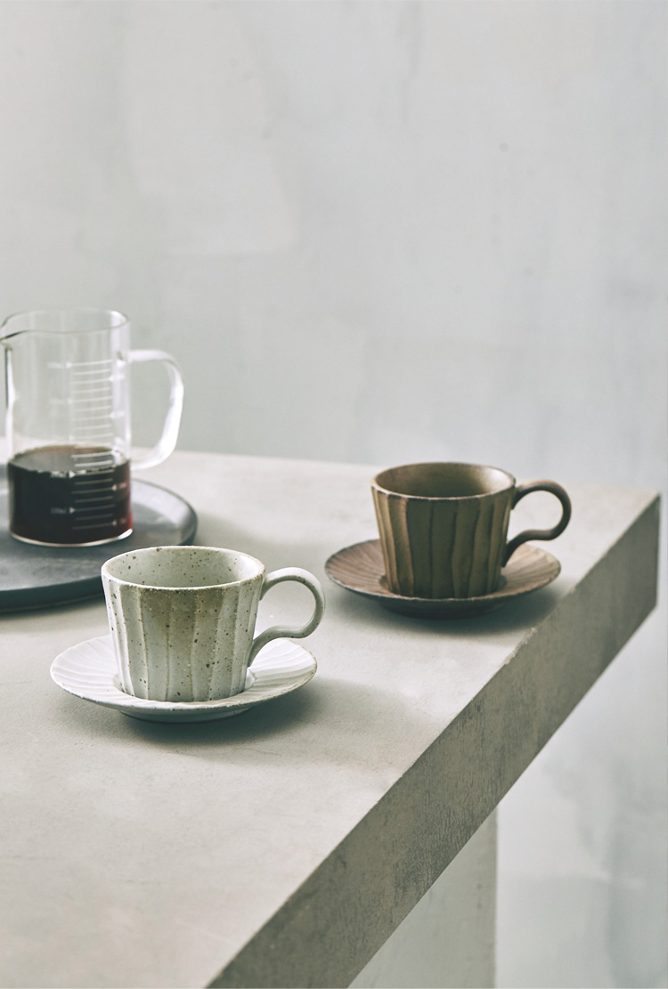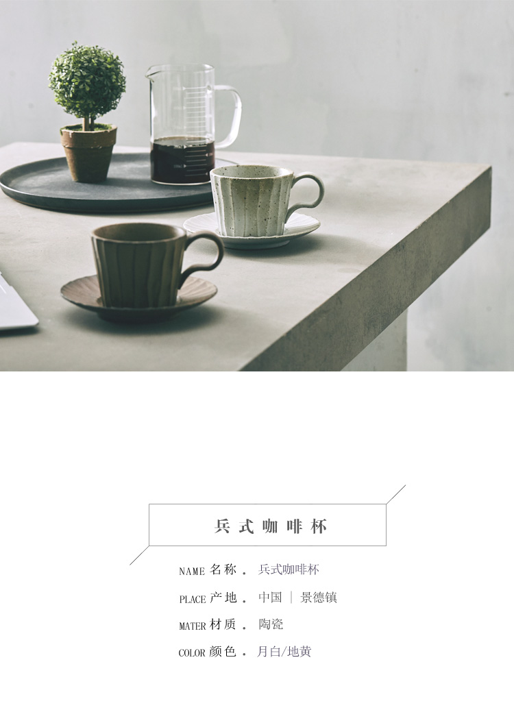 新款意式咖啡杯碟日式復古懷舊手工粗陶條紋花茶牛奶馬克杯1入