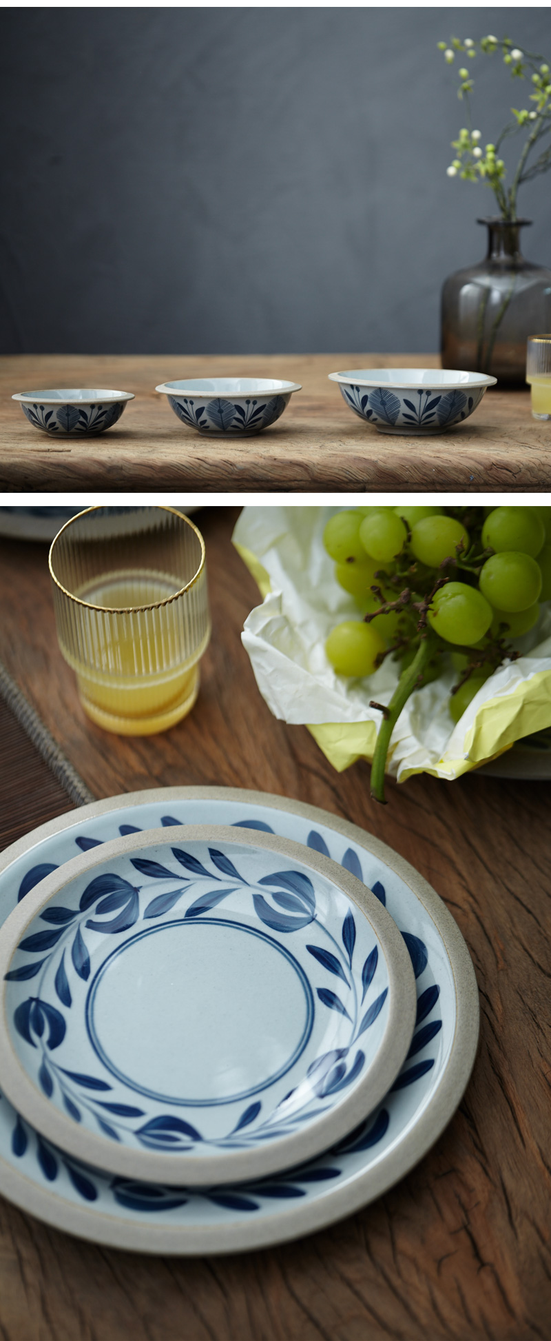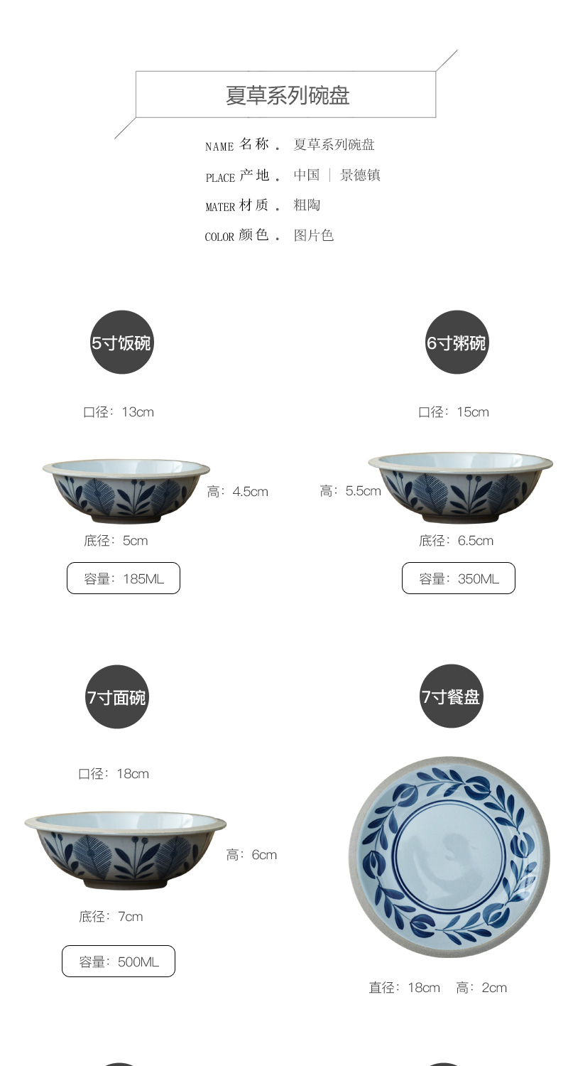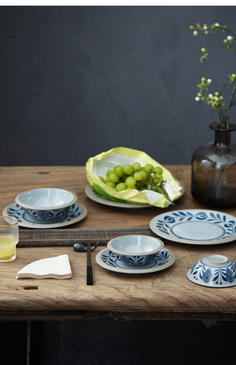 [2]日式飯碗湯面碗商用田園風餐具一人食碗碟手繪植物盤子復古1入