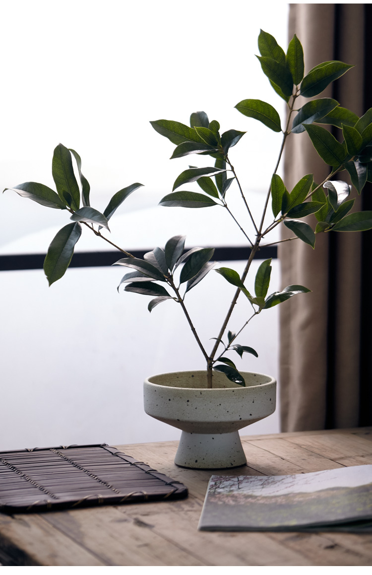 [2]日式禪意花瓶茶道擺件小原流教學插花花器粗陶高足手工花盆1入