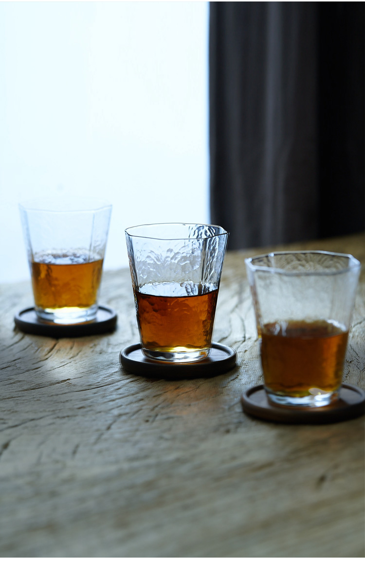 [2]日式復古八角玻璃杯錘目紋咖啡杯水杯洋酒杯簡約禪意紅茶杯1入