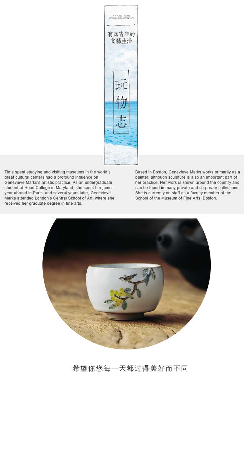 [2]景德鎮手繪琵琶主人杯單杯中式復古品茗杯手工粗陶汝窯開片小茶杯1入