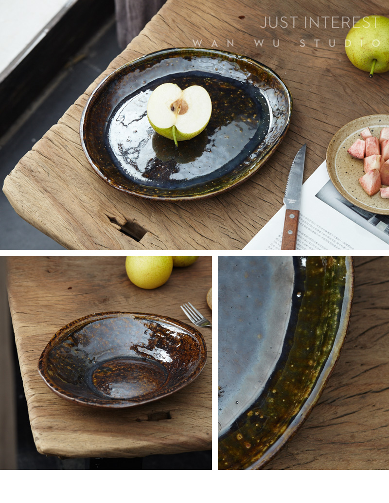 日式不規則手工碟子田園復古餐具陶藝盤子菜盤西餐牛排盤1入