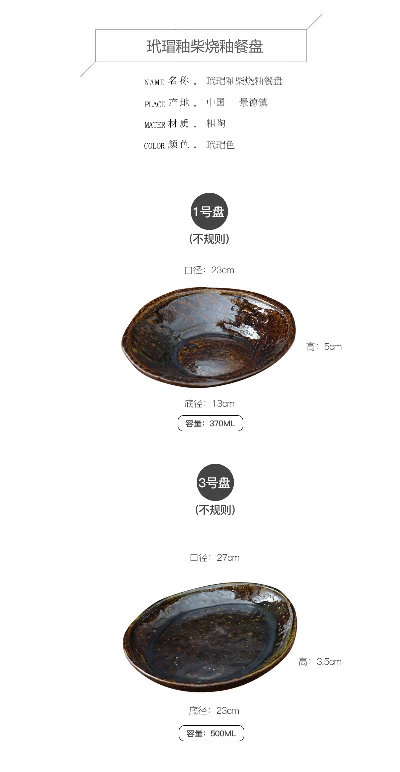 [2]日式不規則手工碟子田園復古餐具陶藝盤子菜盤西餐牛排盤1入
