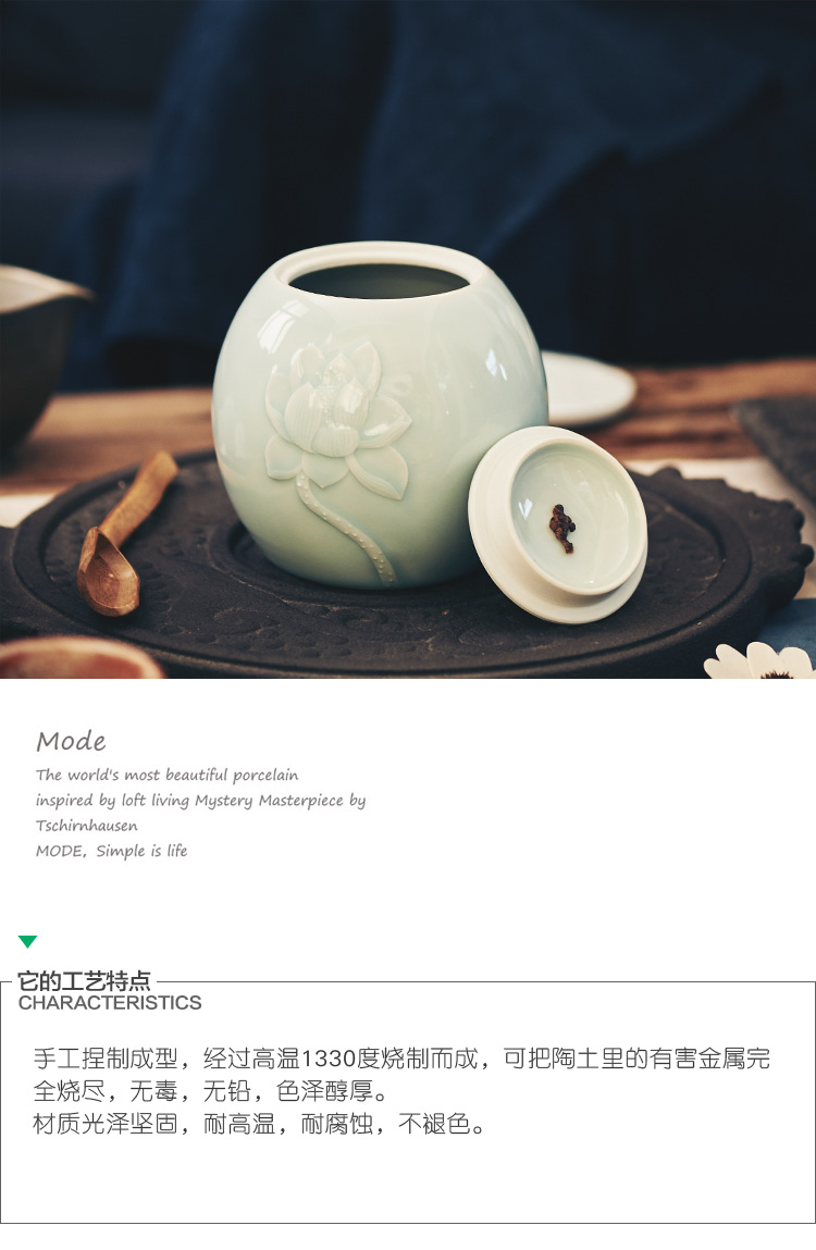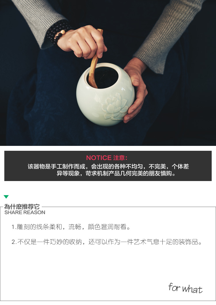 [2]景德鎮手工淺浮雕茶葉罐陶瓷茶倉茶盒 功夫茶具茶道器皿1入