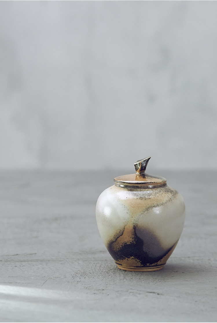 [2]混沌系列柴燒釉茶葉罐紅茶密封罐手工茶倉茶道具小罐子志野1入