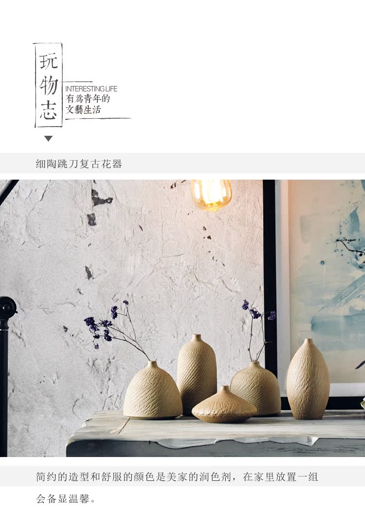 現代簡約室內禪意插花花瓶 創意跳刀原泥小花器陶瓷裝飾品1入