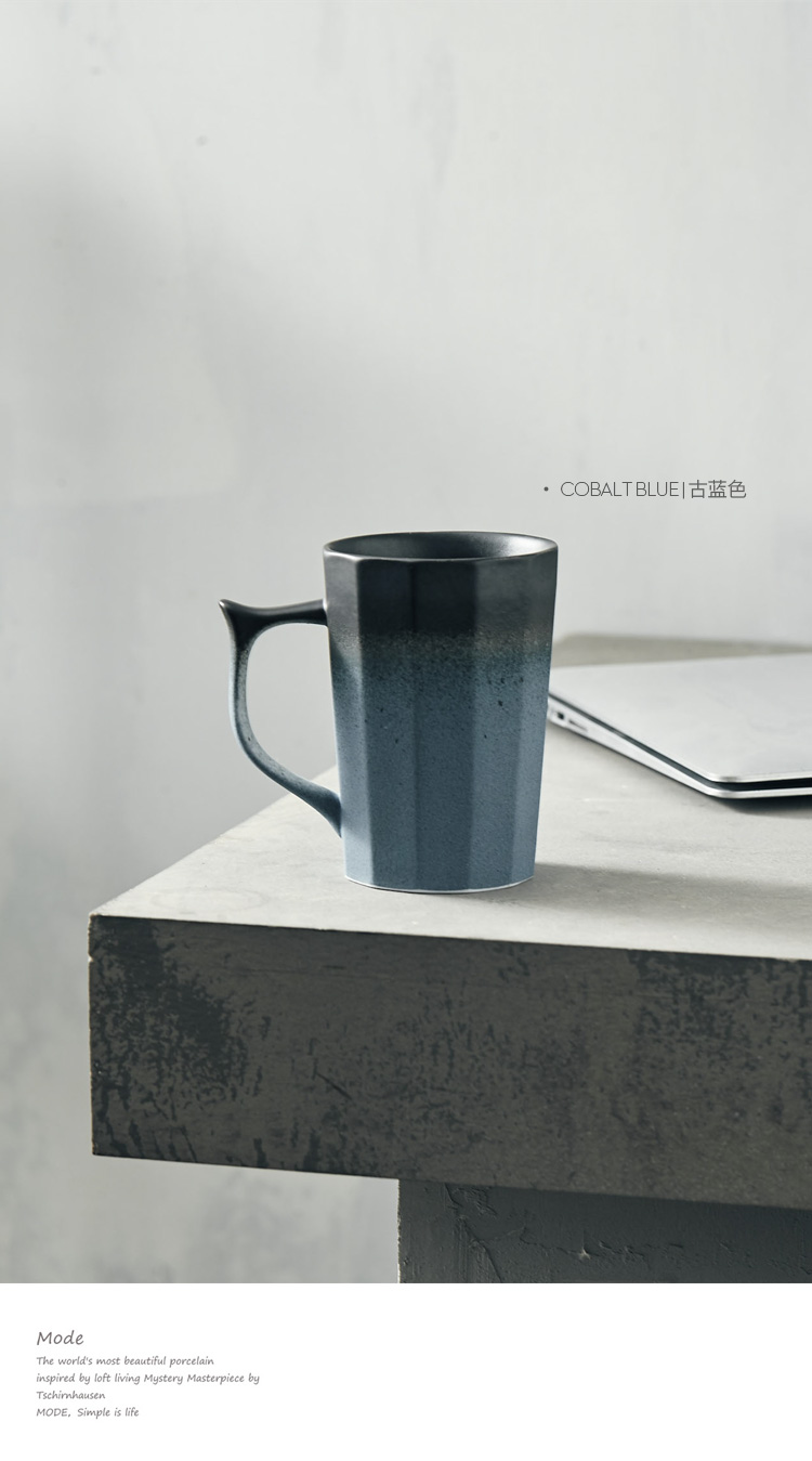 復古陶瓷水杯 創意亞光磨砂咖啡杯帶把手 情侶定制辦公室馬克杯子1入