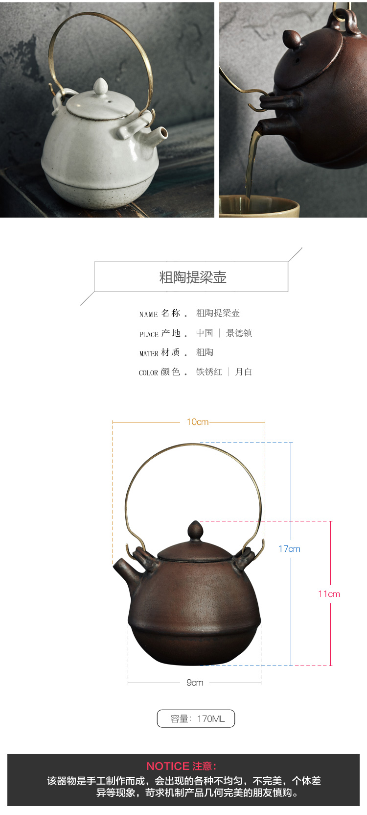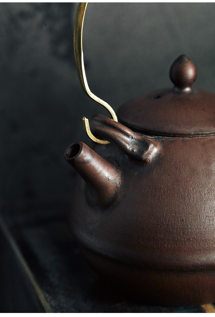 [2]日式提梁壺手工粗陶復古泡茶壺日式禪意茶道裝飾功夫茶茶具1入
