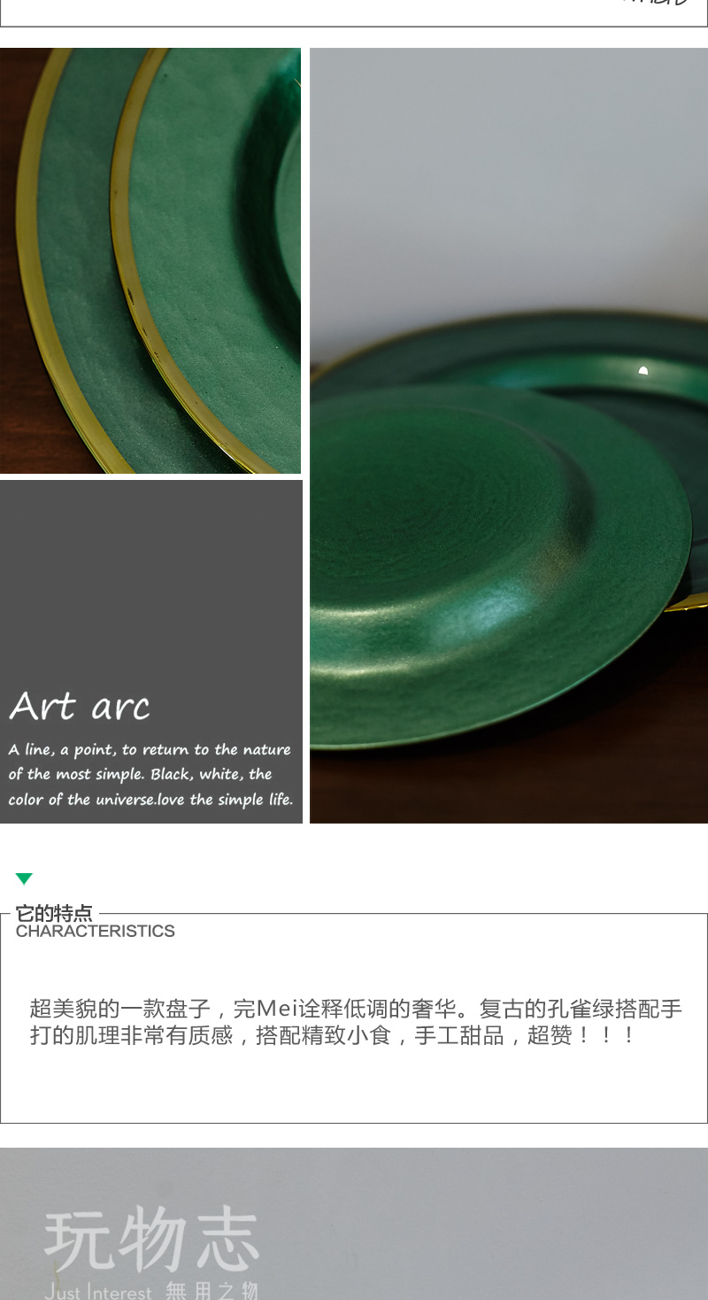 ins法式甜品盤子蛋糕碟子10寸復古綠玻璃擺盤西餐盤首飾盤1入
