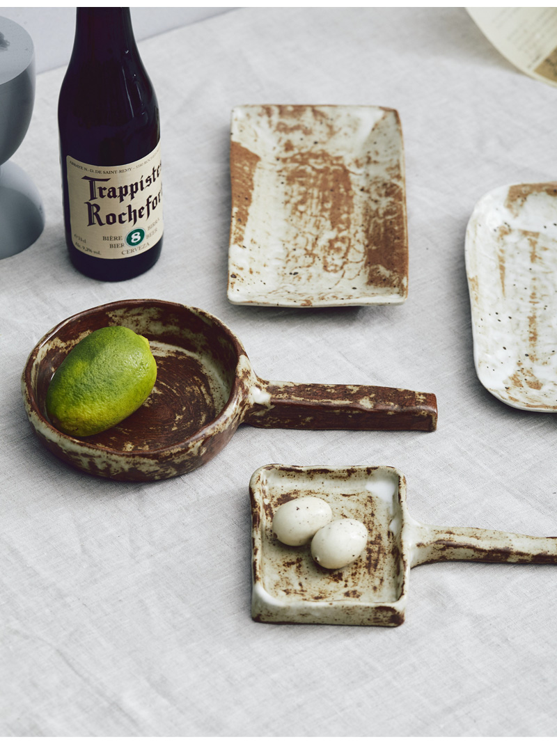 [2]超有趣的手工粗陶餐具方形碟子蛋糕盤小菜碟特色火鍋蘸料碟1入