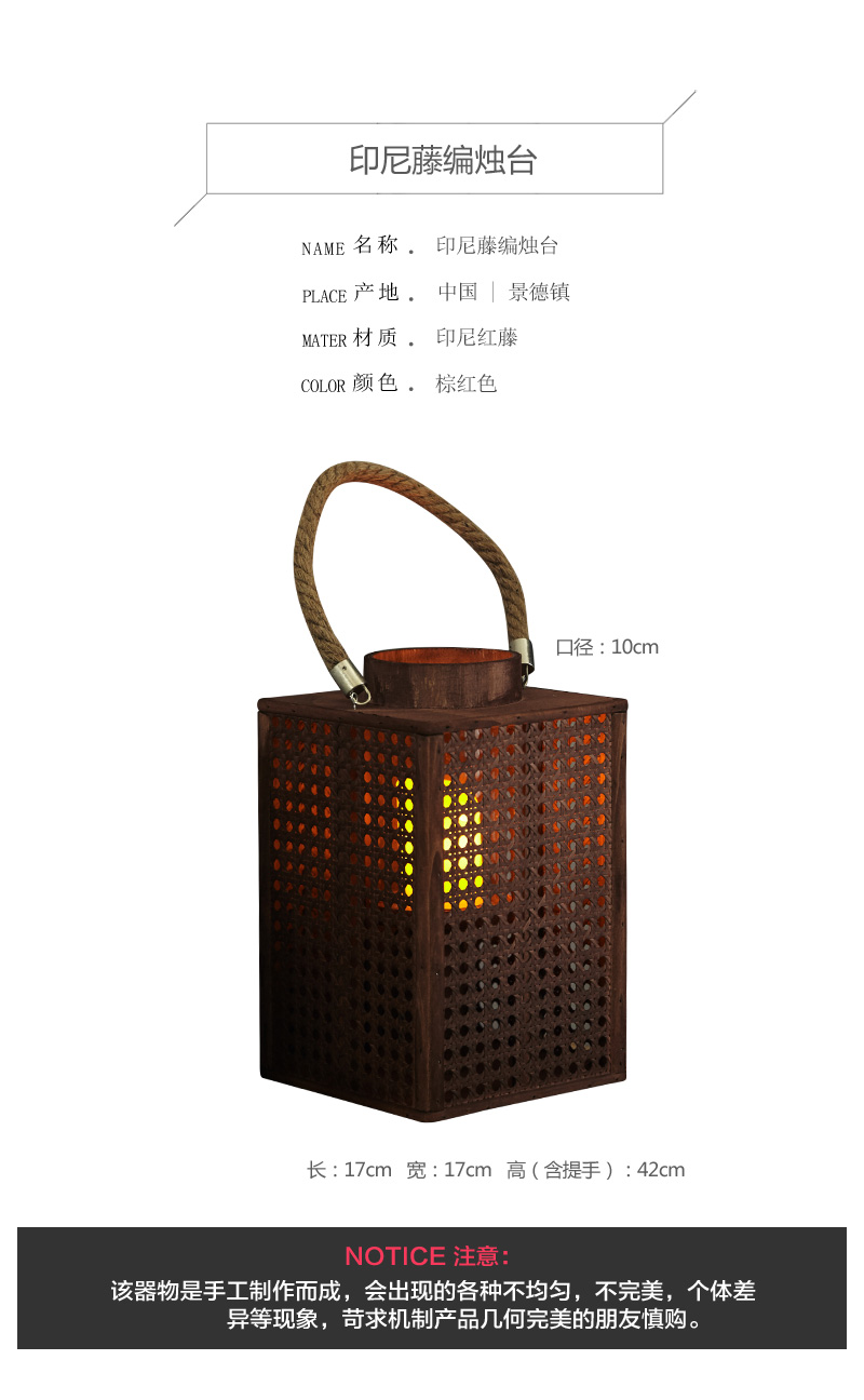 印尼藤編復古燈籠茶室古風裝飾擺件禪意小夜燈燭臺攝影道具1入