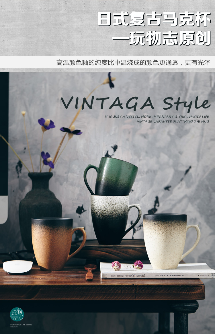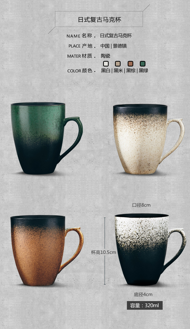 馬克杯子陶瓷 簡約茶水杯 復古創意咖啡杯 早餐杯 情侶定制1入