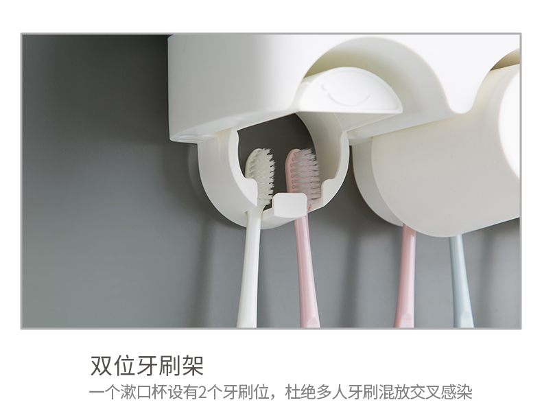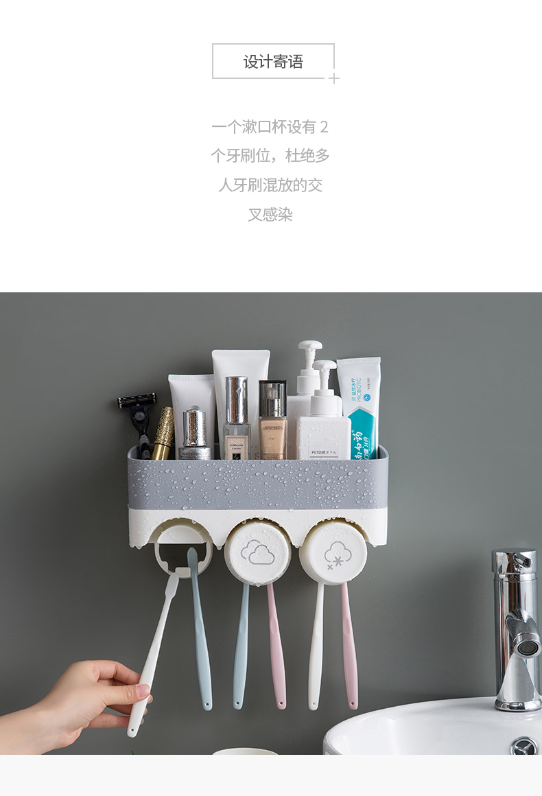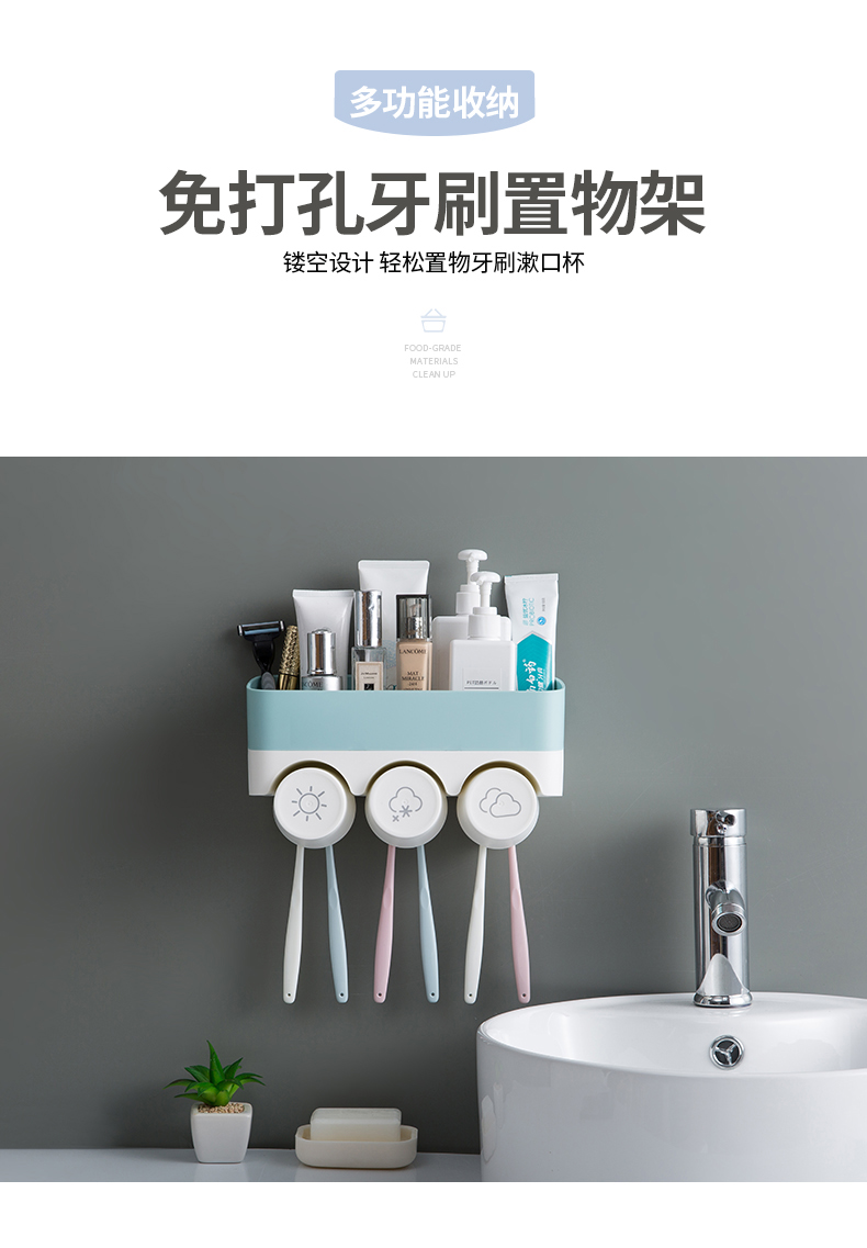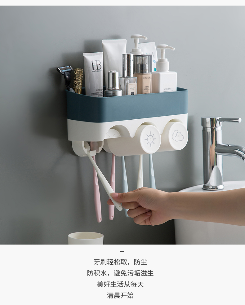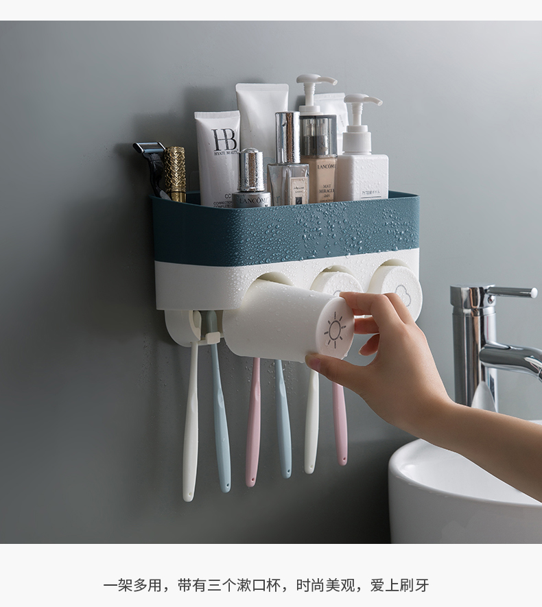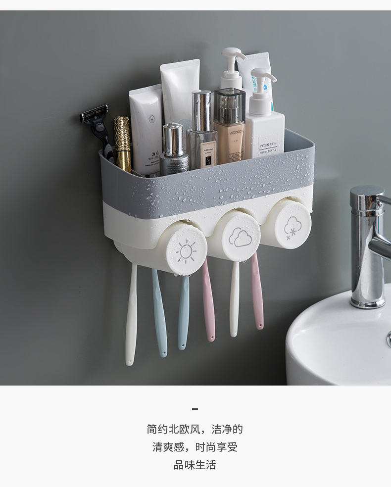 衛生間牙刷置物架免打孔壁掛式多功能漱口杯架套裝吸壁掛墻式牙杯1入