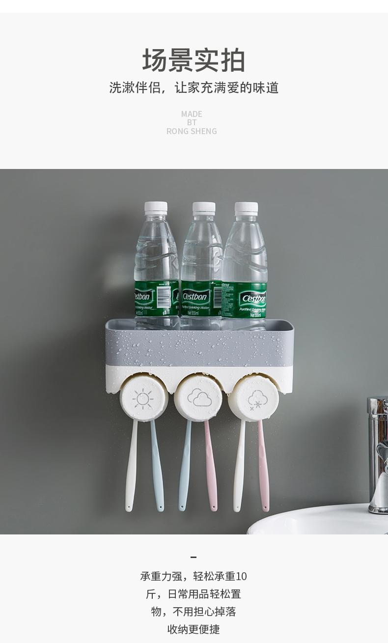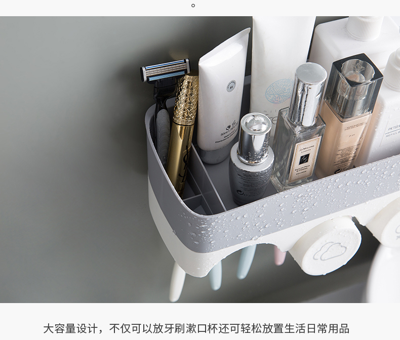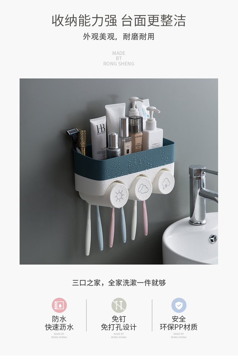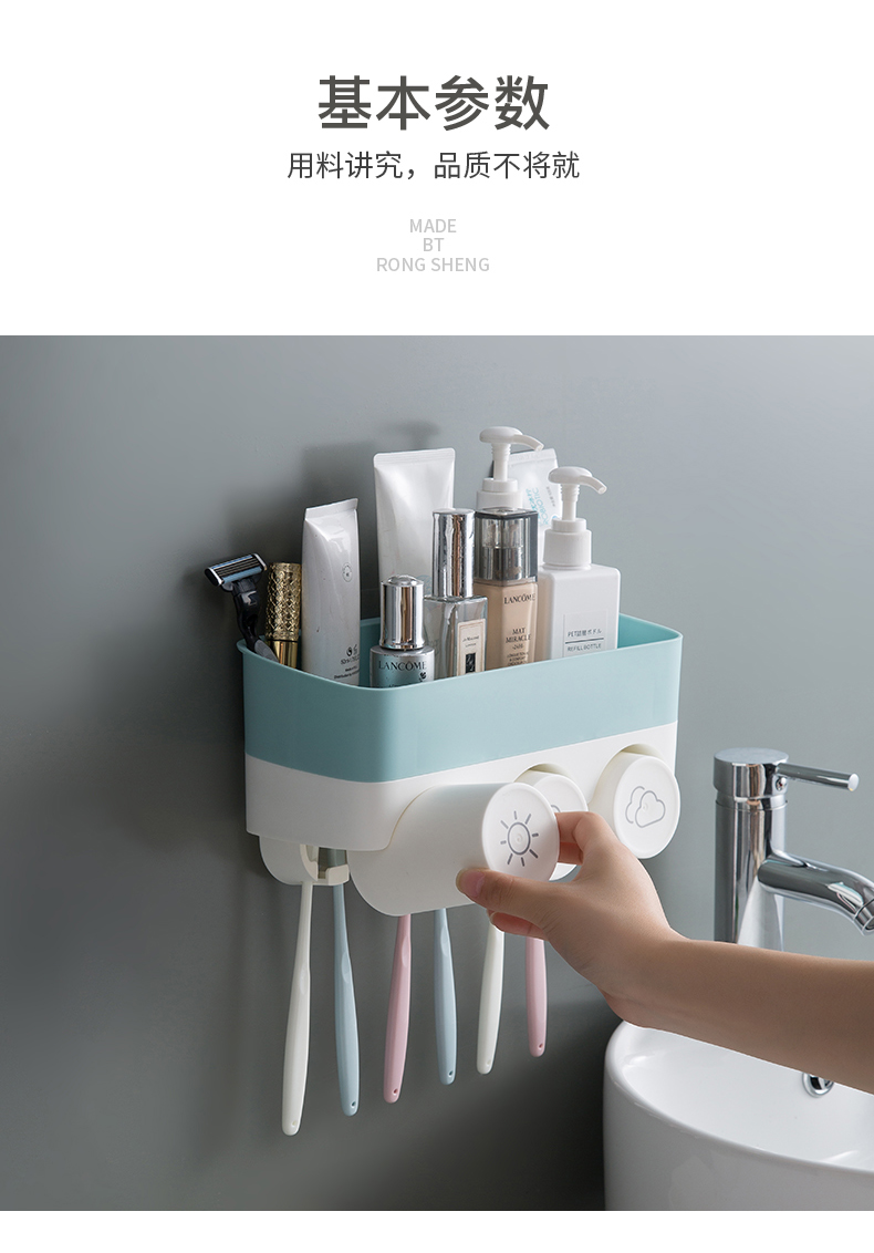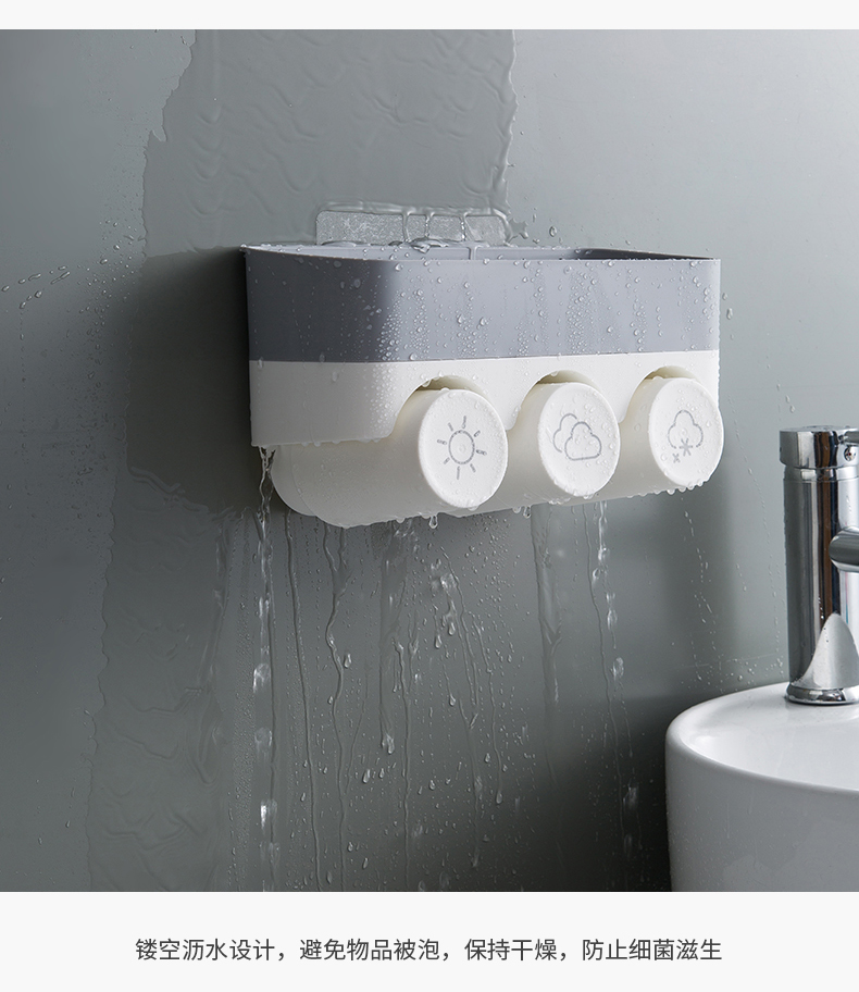 衛生間牙刷置物架免打孔壁掛式多功能漱口杯架套裝吸壁掛墻式牙杯1入