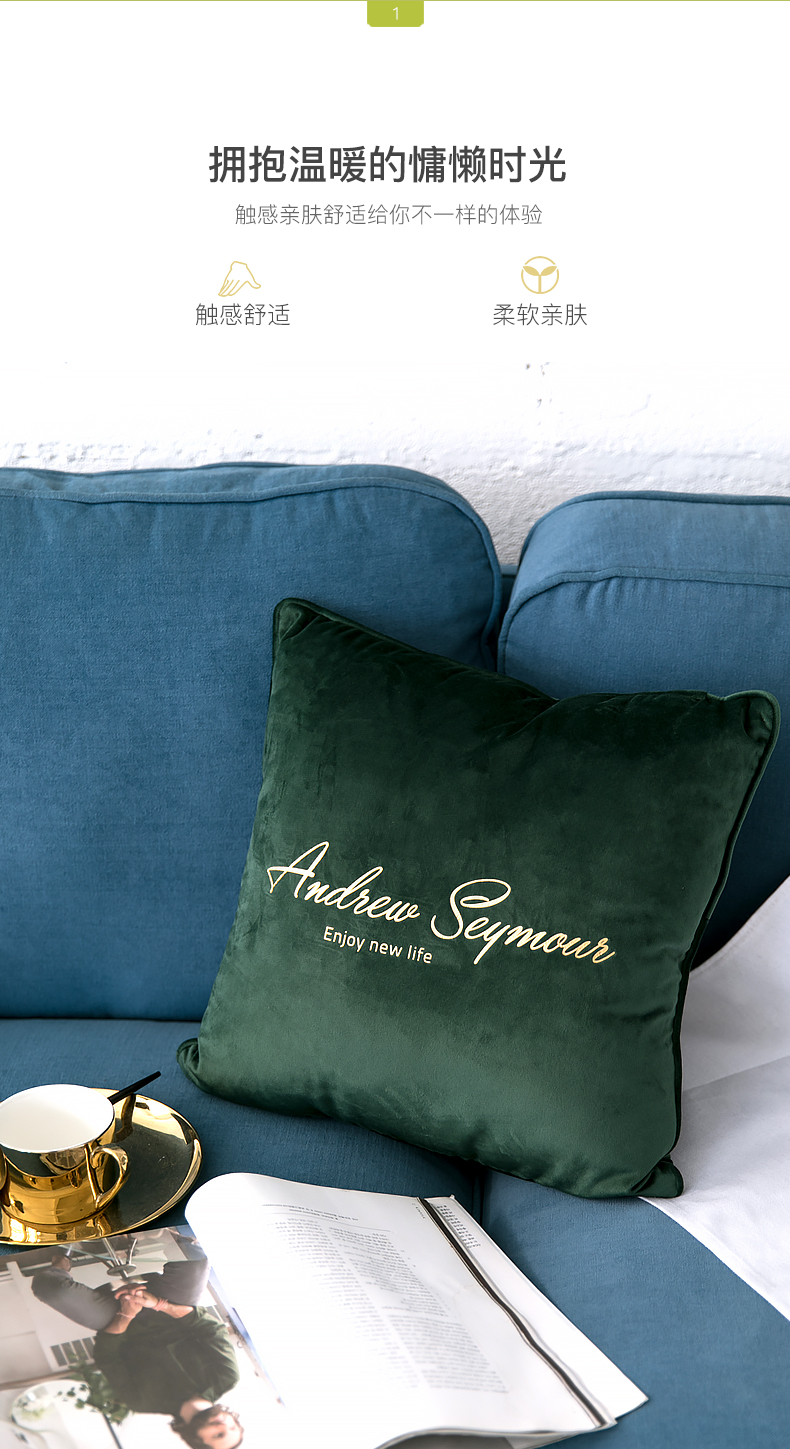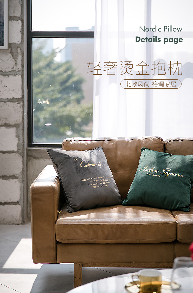 半島良品北歐ins燙金抱枕絲絨輕奢靠墊床頭客廳沙發靠枕靠背可拆1入