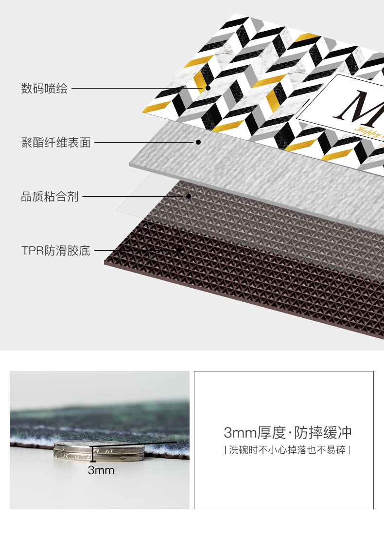 半島良品家用廚房地墊防滑防油吸水墊子門口客廳臥室長條腳墊地毯1入