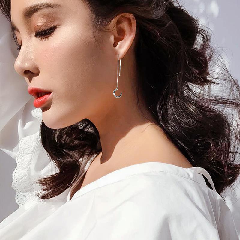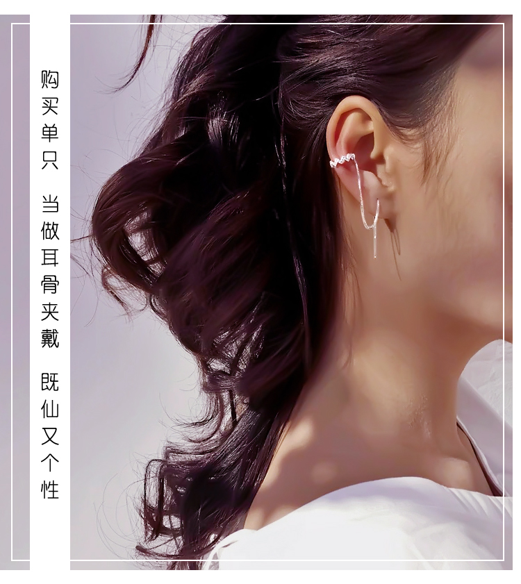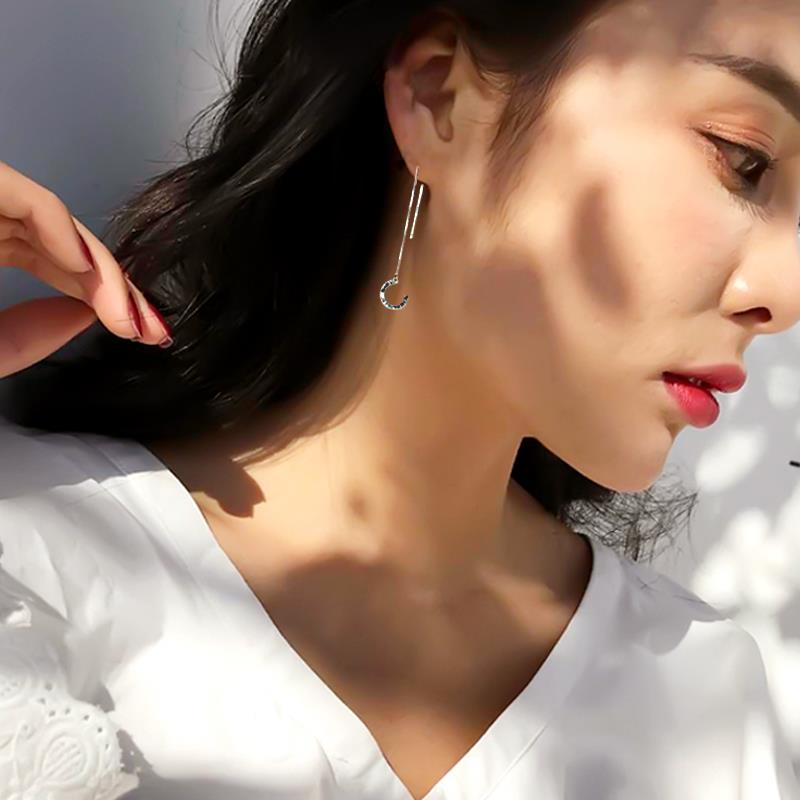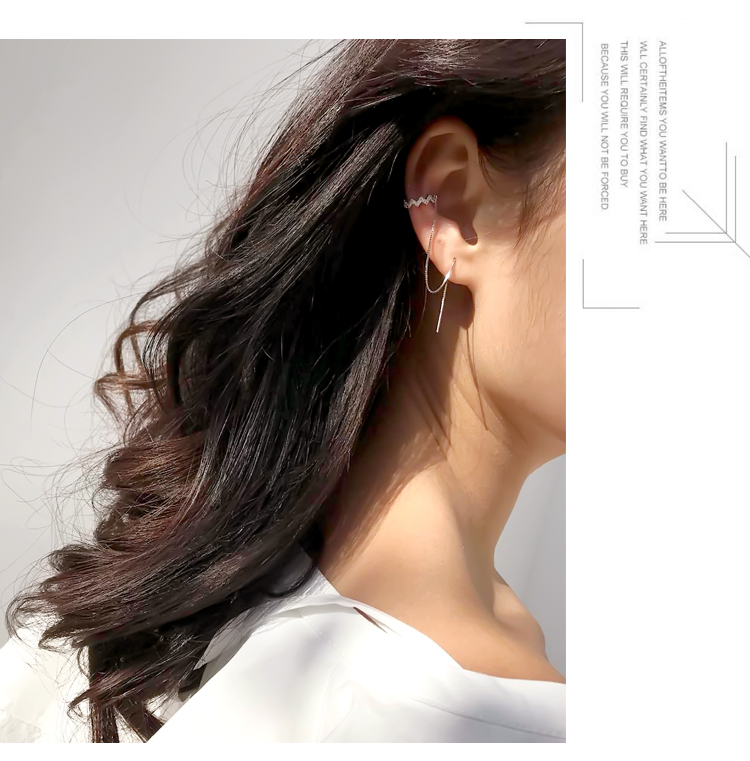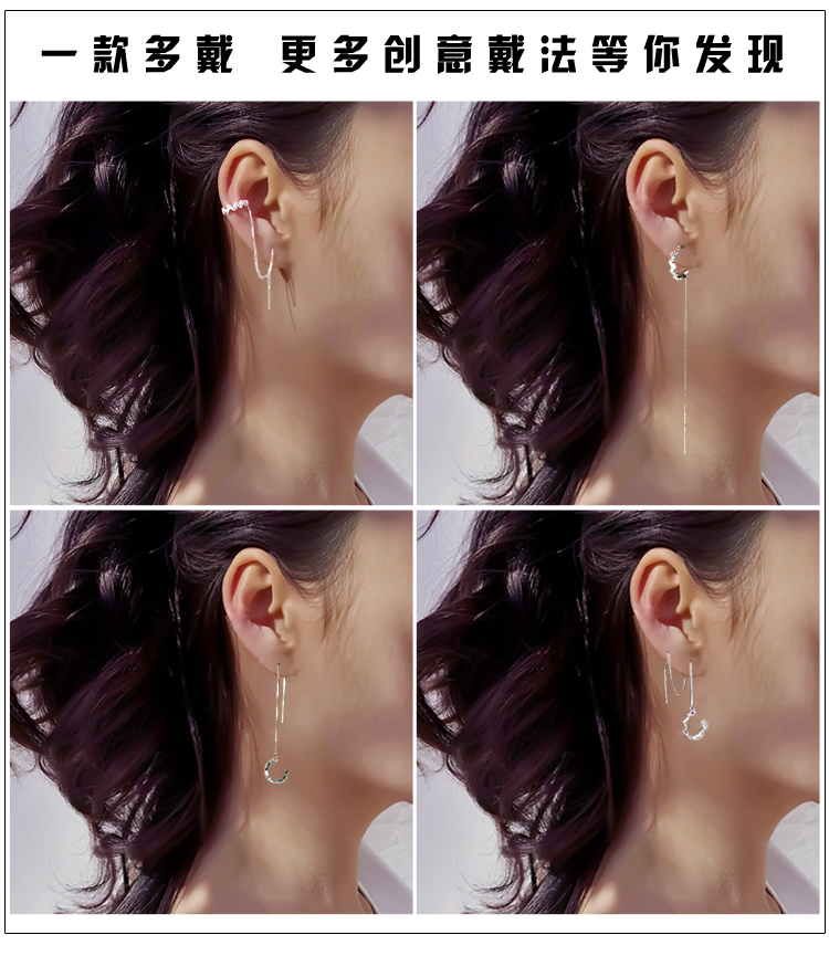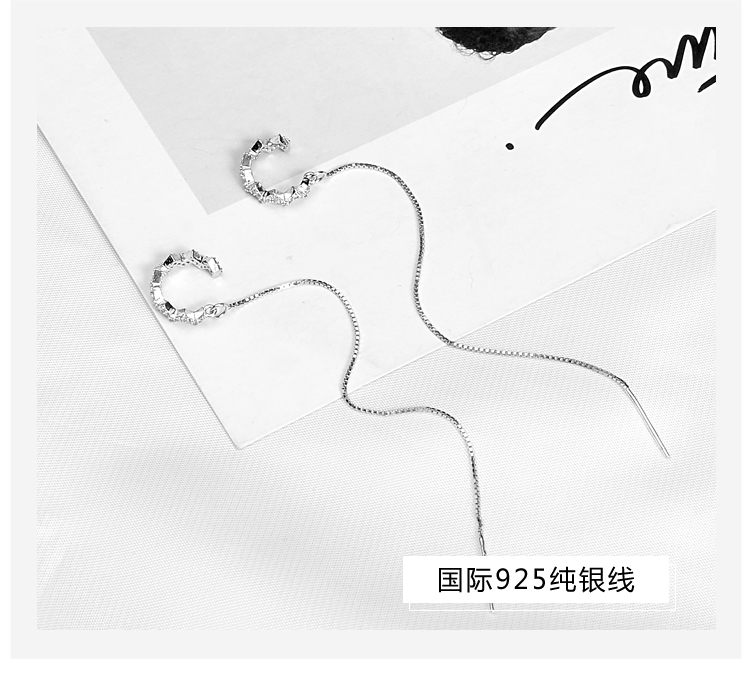 超仙顯臉瘦一款三戴耳釘網紅耳環女氣質韓國長款純銀耳線耳鏈耳墜1入